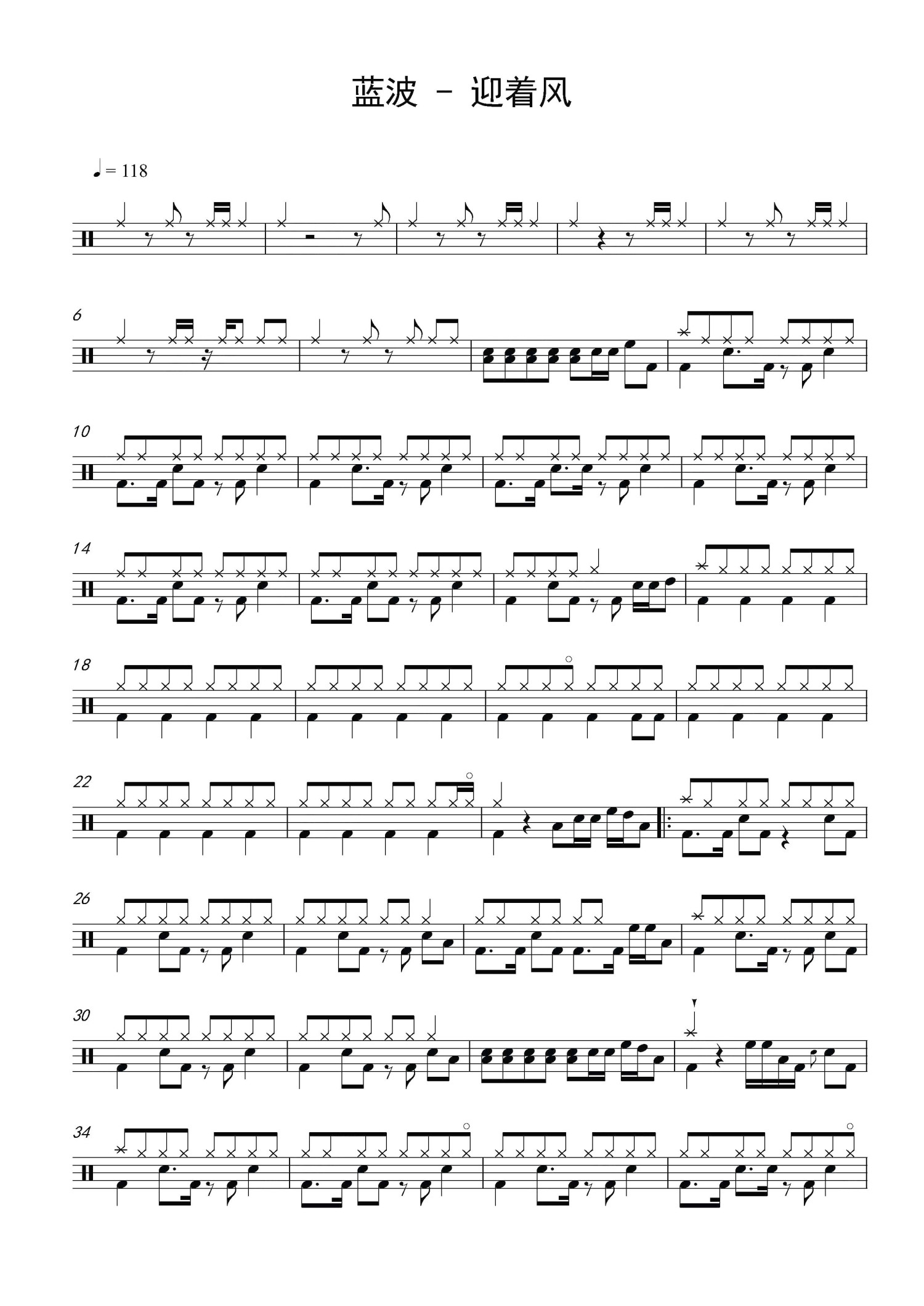 迎着风鼓谱 - 蓝波 - 架子鼓谱