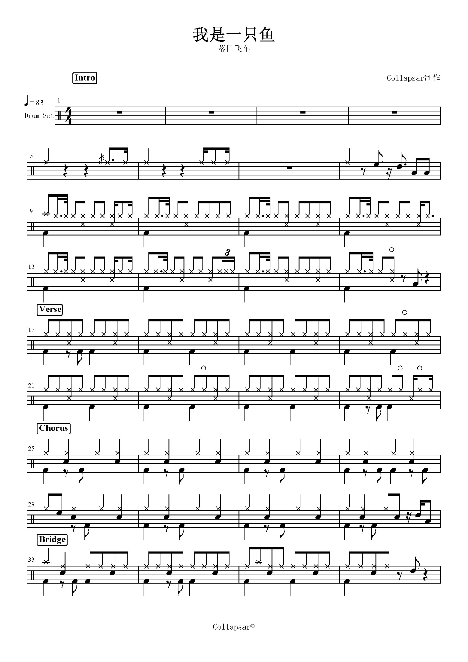 • 我是一只鱼鼓谱 - 落日飞车 - 架子鼓谱第1张