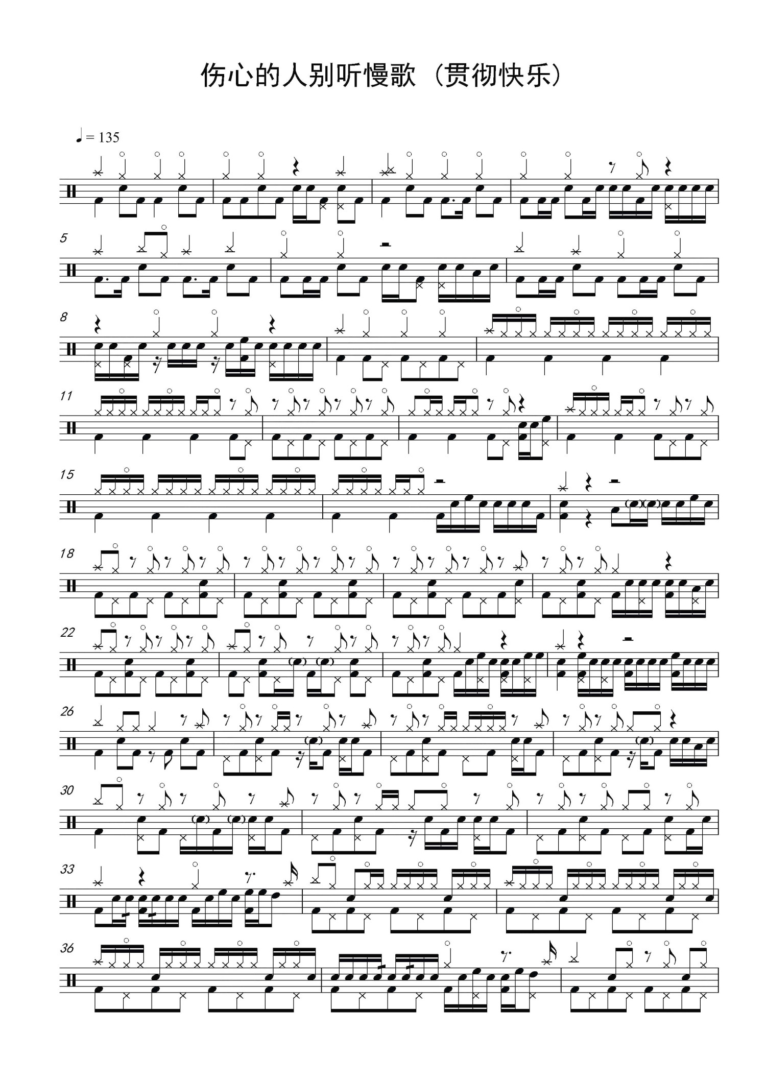 • 伤心的人别听慢歌鼓谱 - 李科颖 - 架子鼓谱第1张