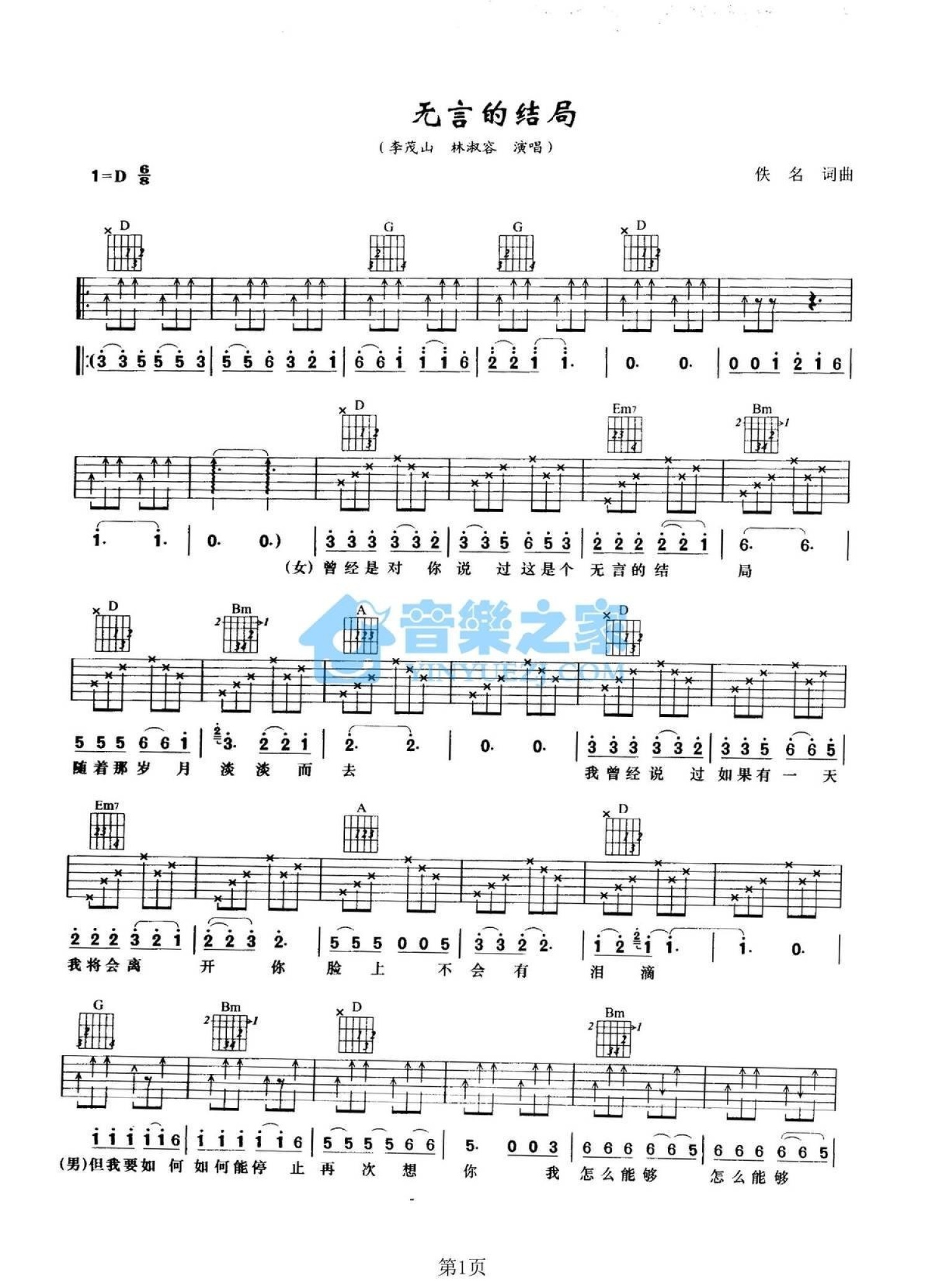 无言的结局吉他谱 - 李茂山/林淑容 - D调吉他弹唱谱