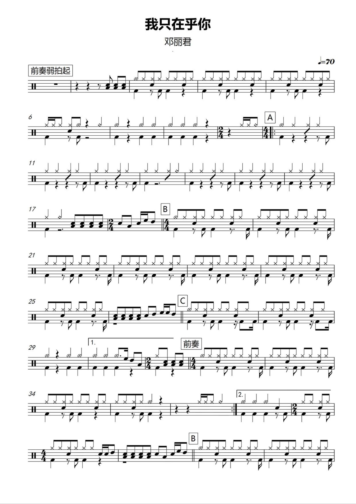 • 我只在乎你鼓谱 - 邓丽君 - 架子鼓谱第1张