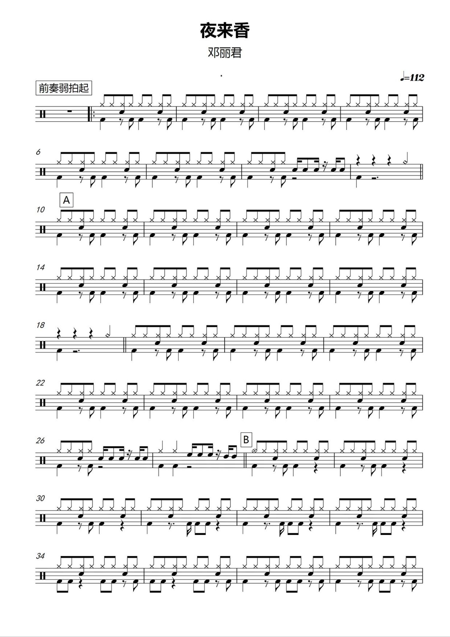 • 夜来香鼓谱 - 邓丽君 - 架子鼓谱第1张