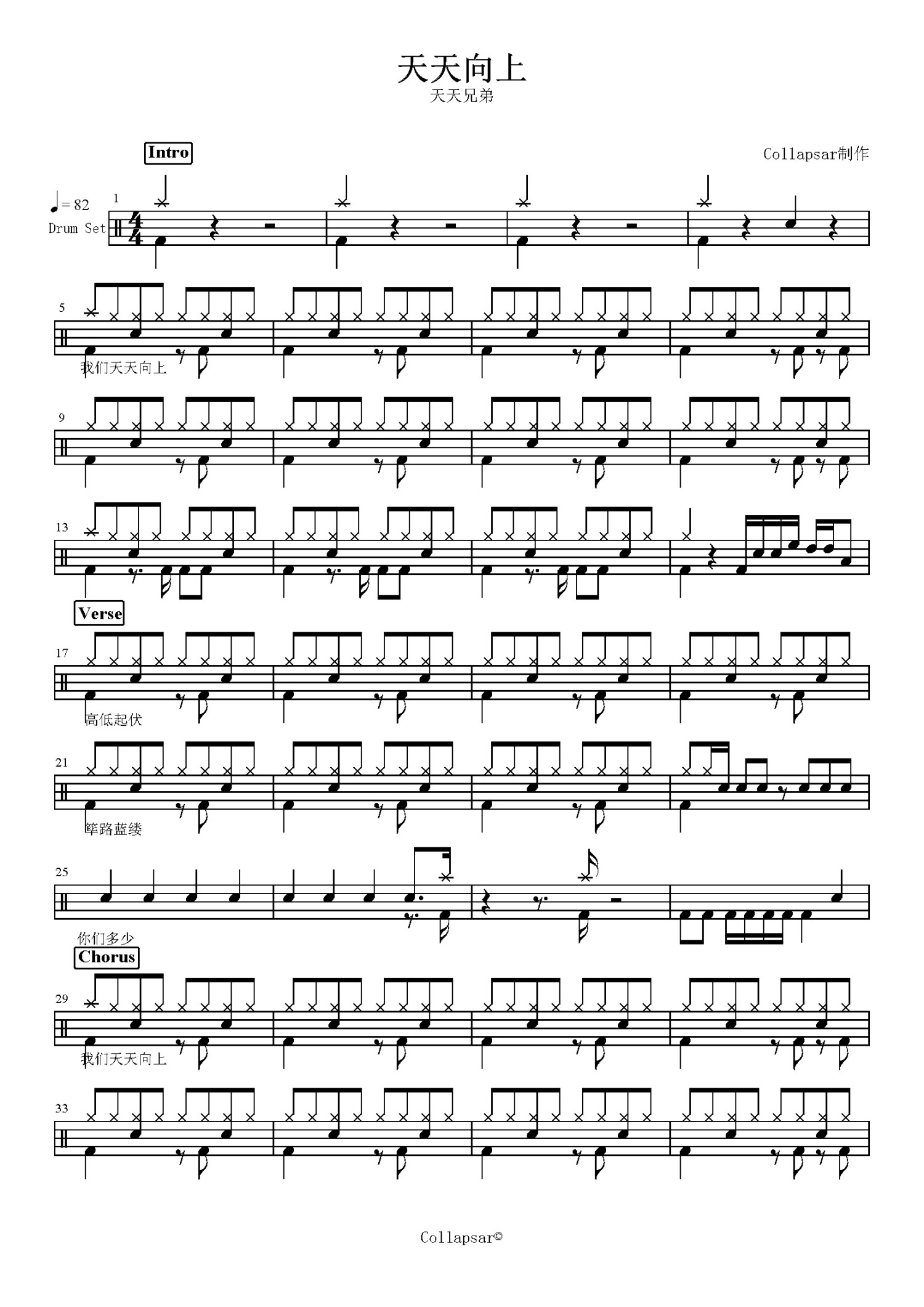 • 天天向上鼓谱 - 天天兄弟 - 架子鼓谱第1张