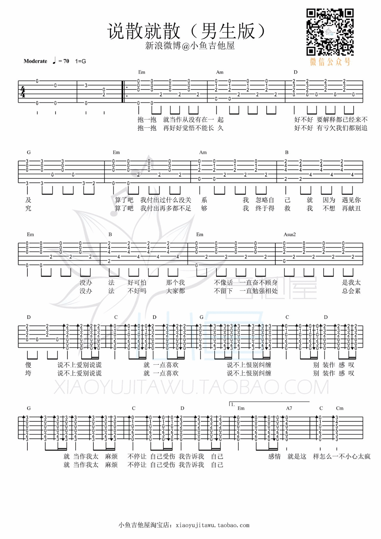 说散就散吉他谱 - G调吉他弹唱谱 - 男生版