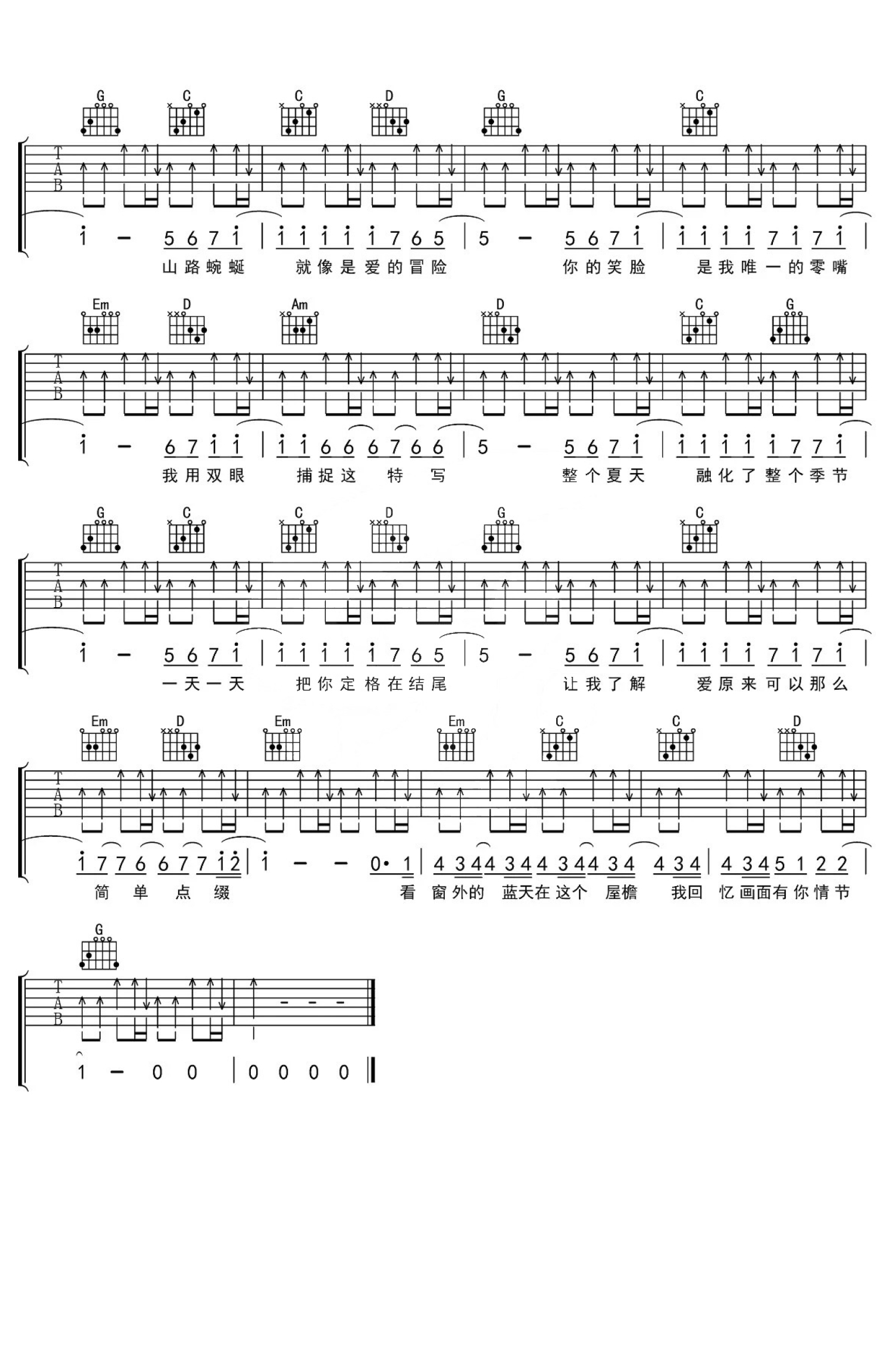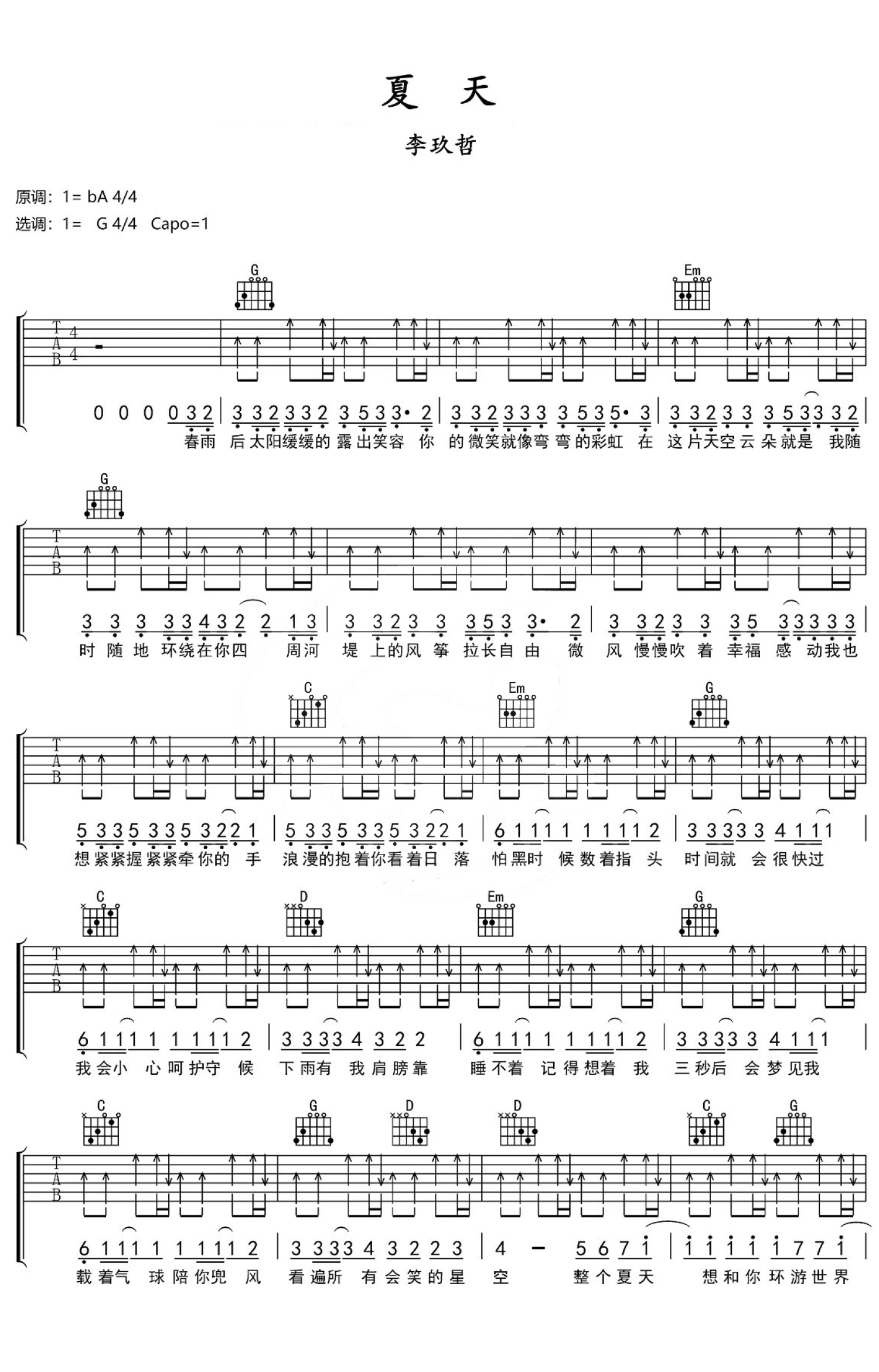 夏天吉他谱 - 李玖哲 - G调吉他弹唱谱