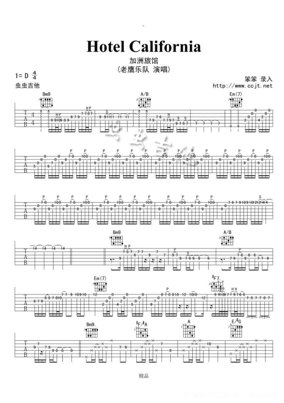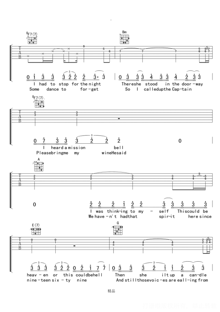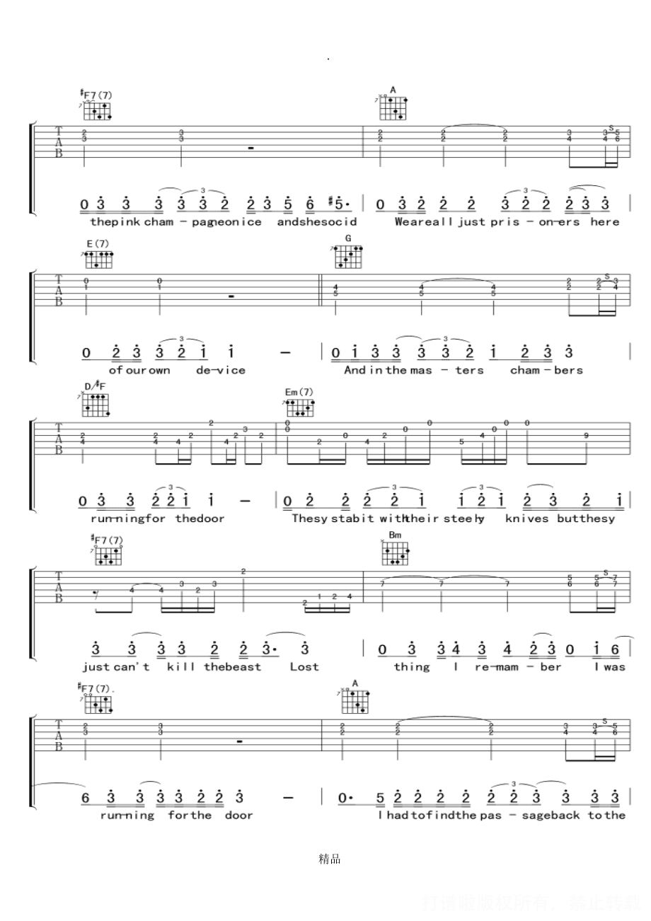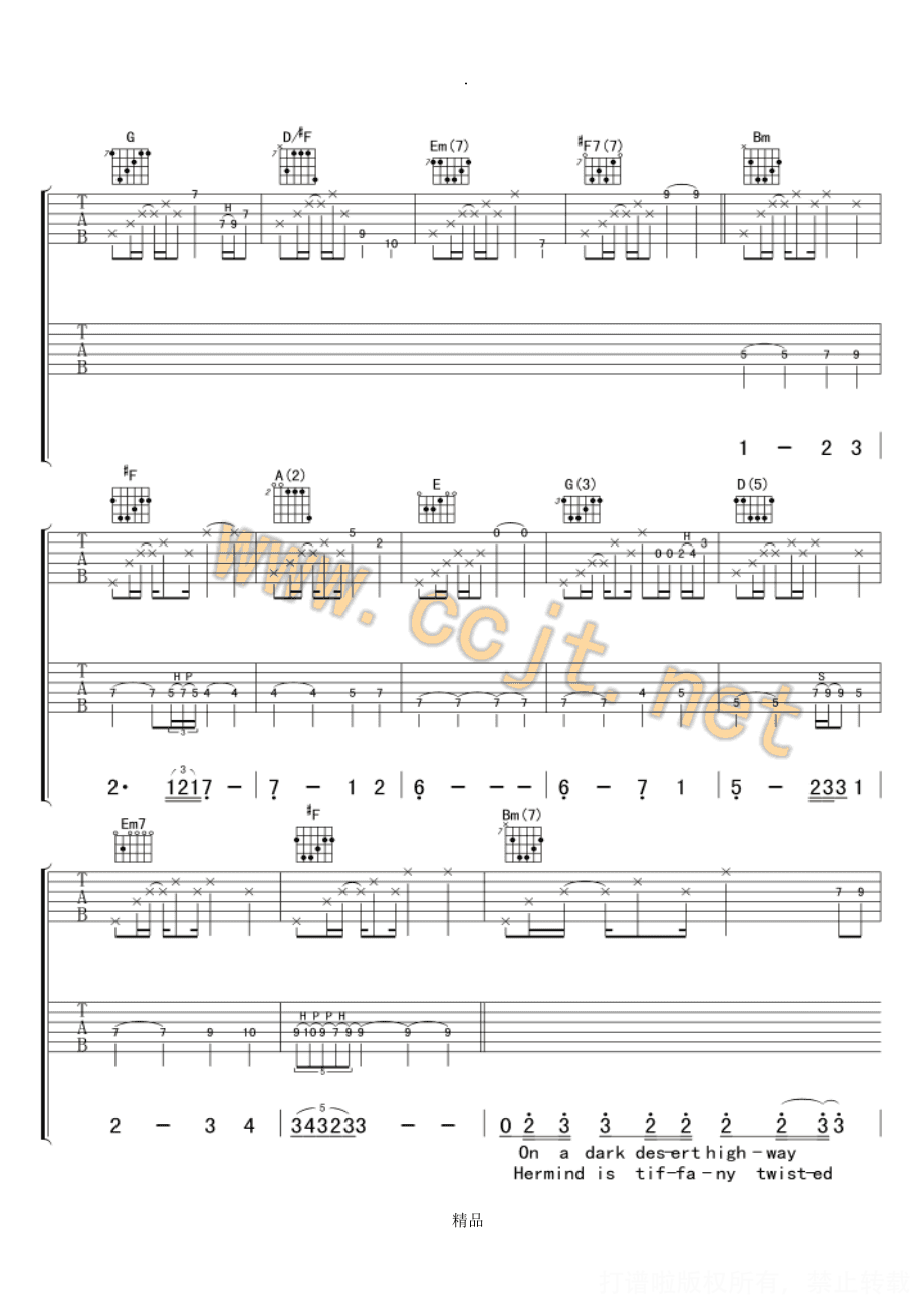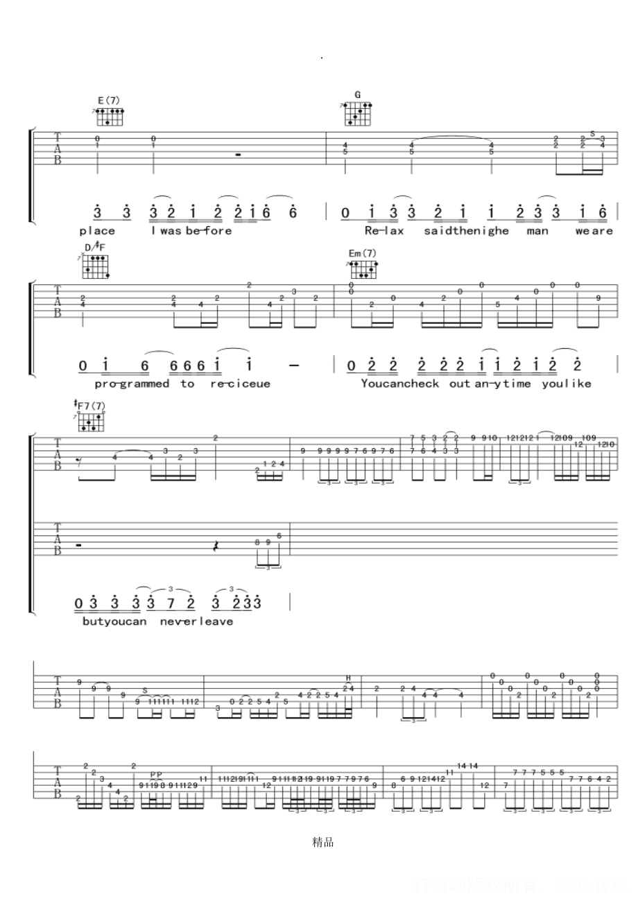 曲谱介绍: 加州旅馆原版吉他谱(完整版)