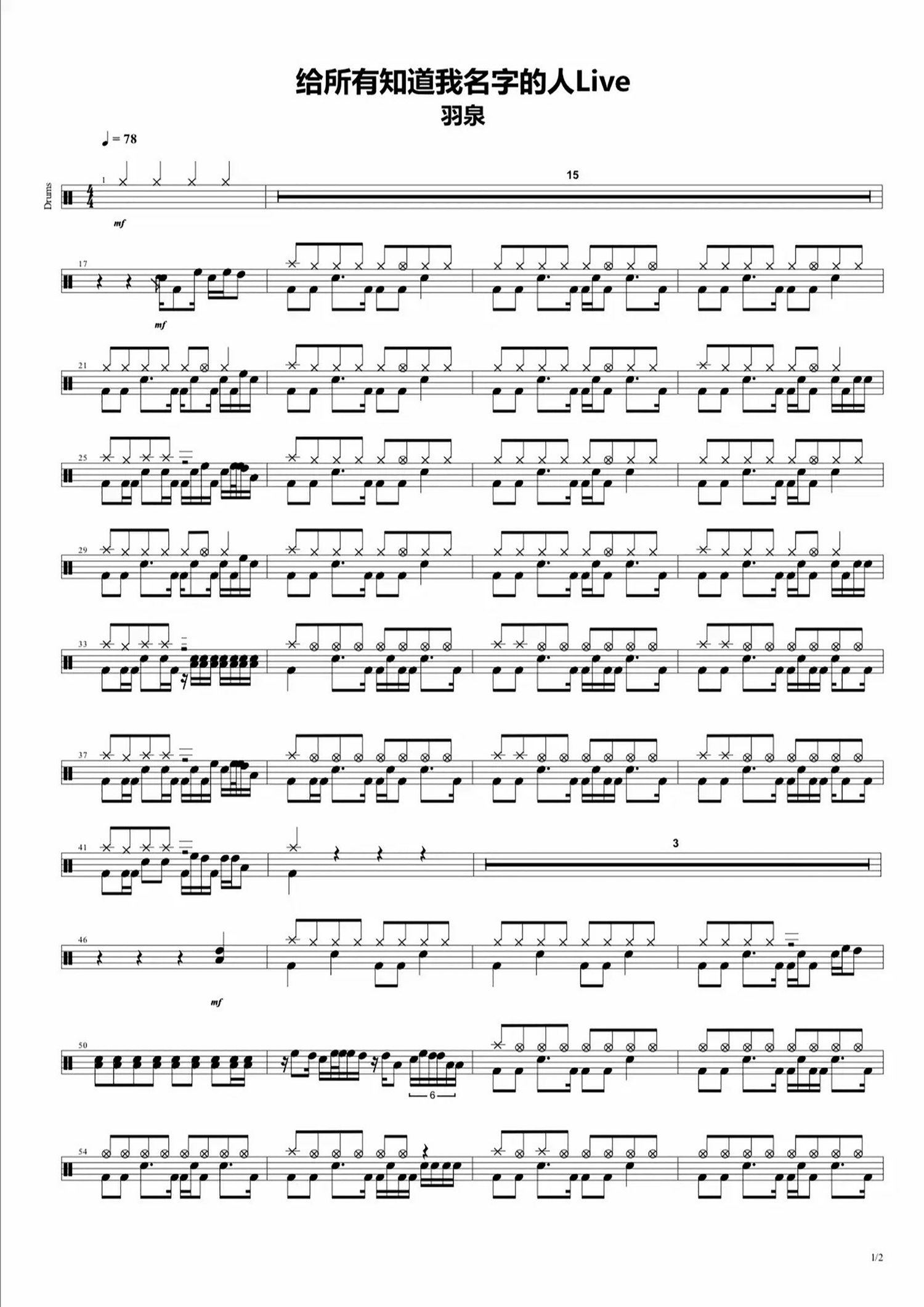 • 给所有知道我名字的人鼓谱 - 羽泉 - 架子鼓谱第1张