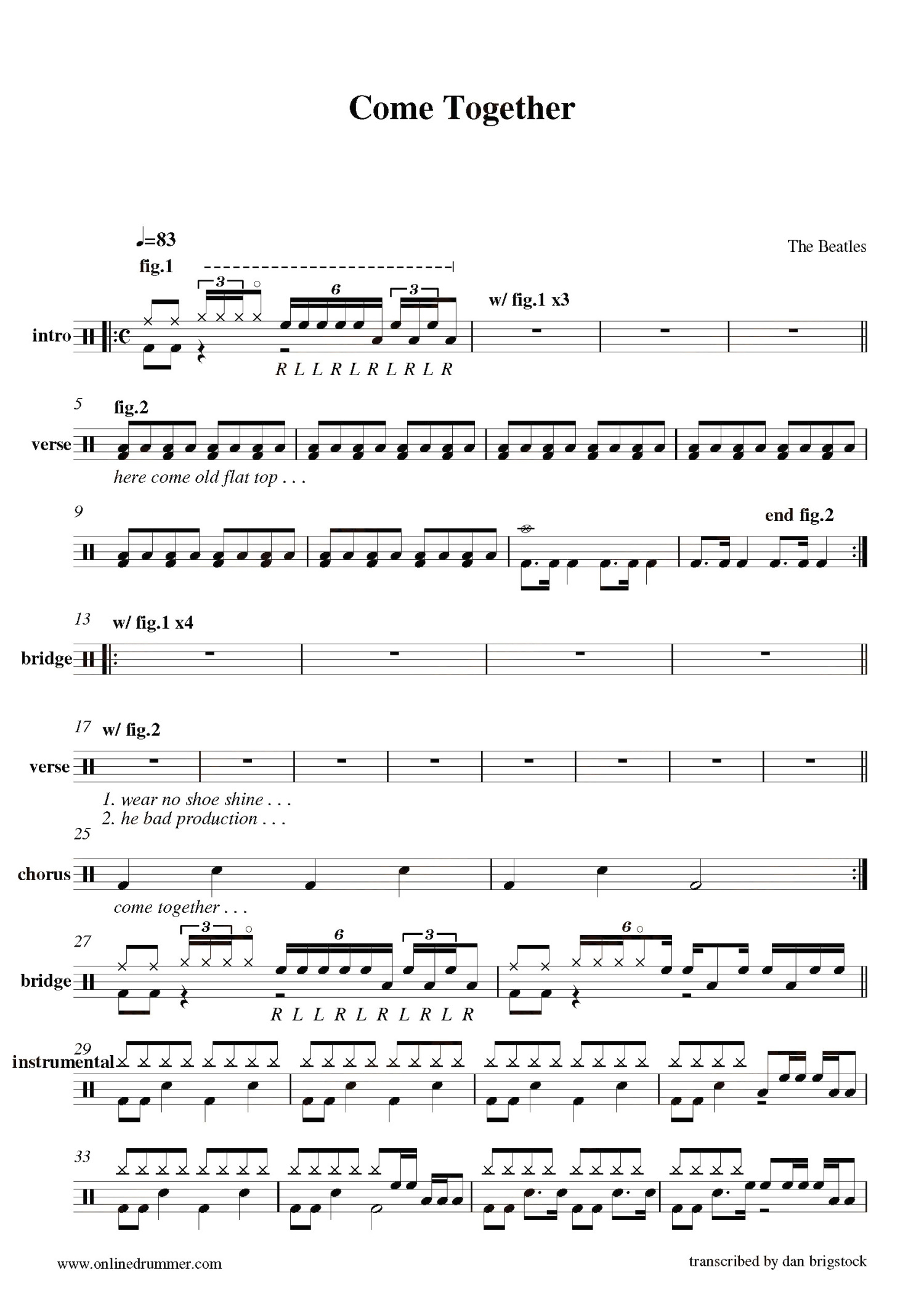 • Come Together鼓谱 - Beatles - 架子鼓谱第1张