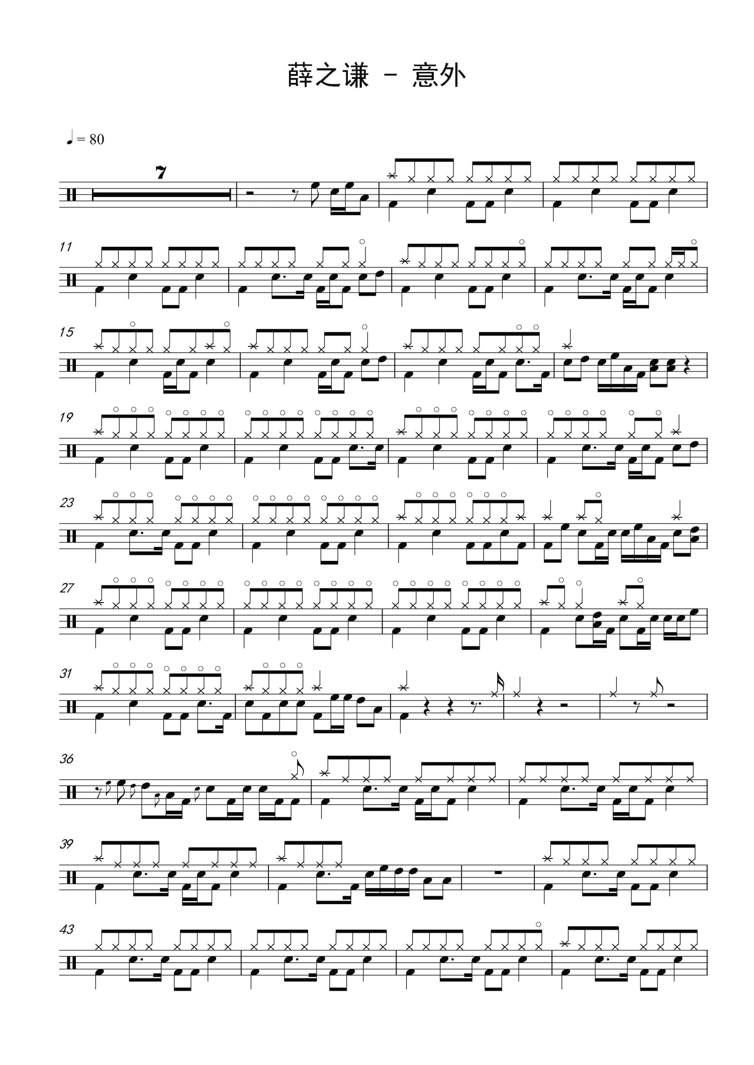 • 意外鼓谱 - 薛之谦 - 架子鼓谱第1张