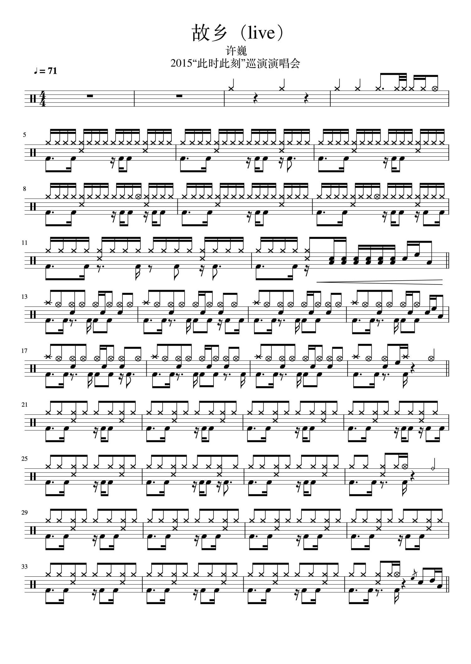 • 故乡鼓谱 - 许巍 - 架子鼓谱 - live第1张