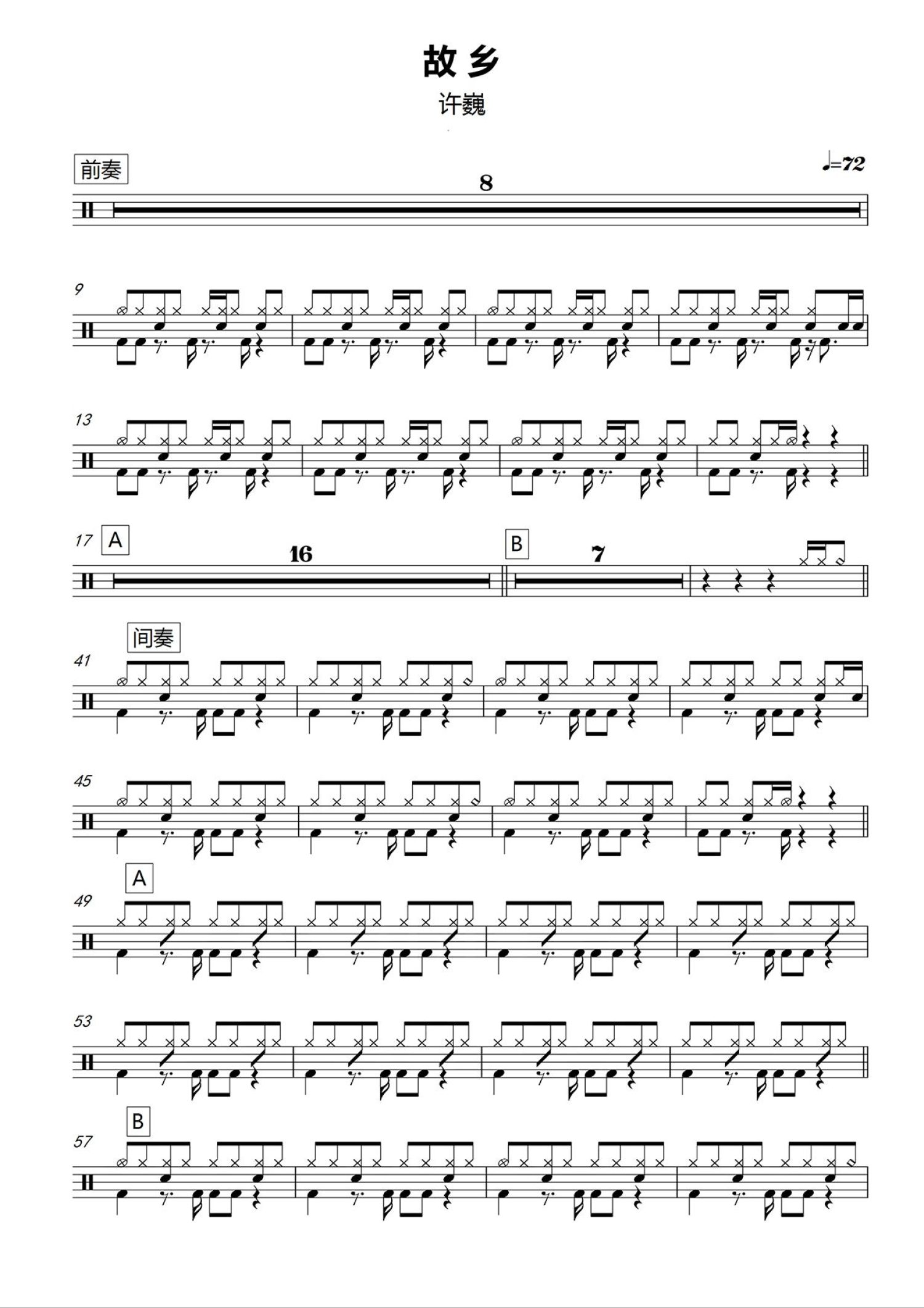 • 故乡鼓谱 - 许巍 - 架子鼓谱第1张