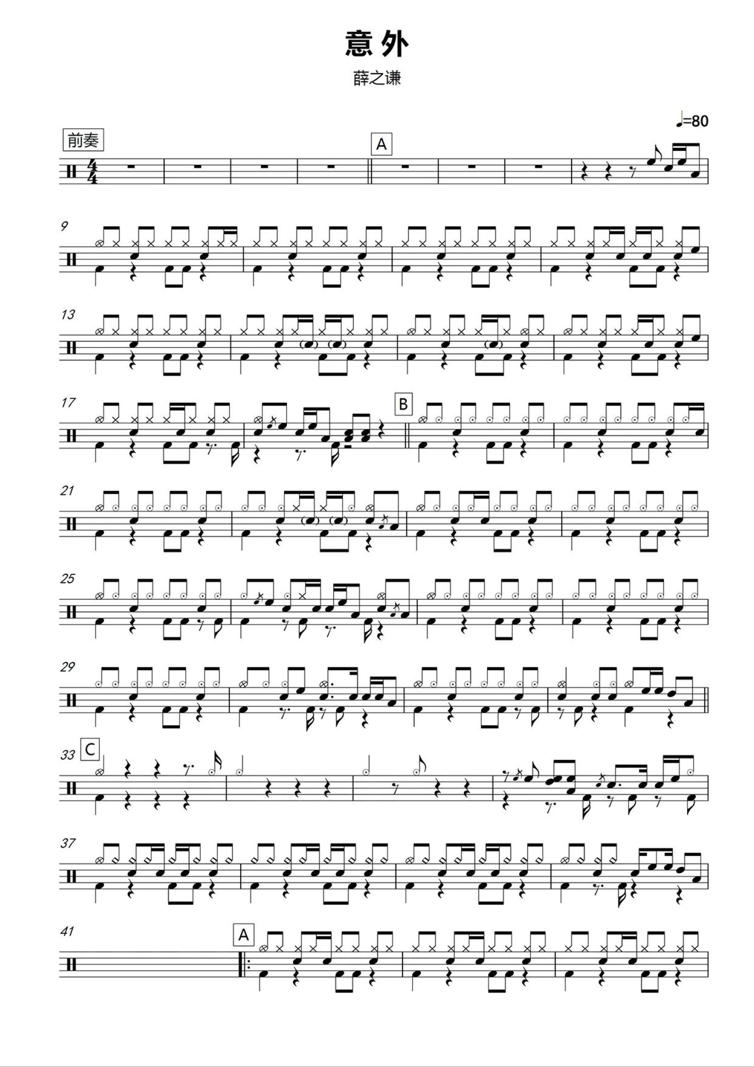 • 意外鼓谱 - 薛之谦 - 架子鼓谱第1张