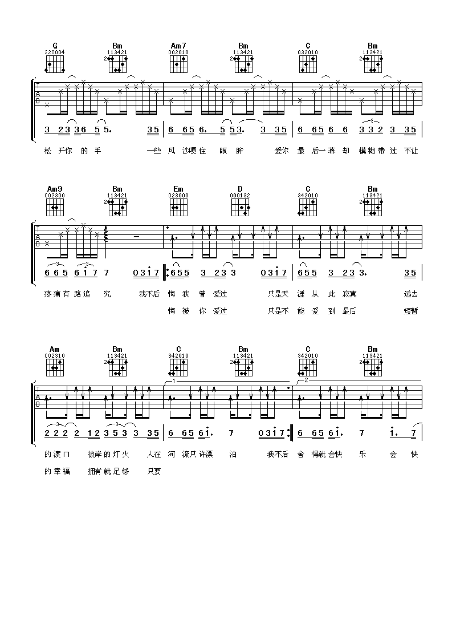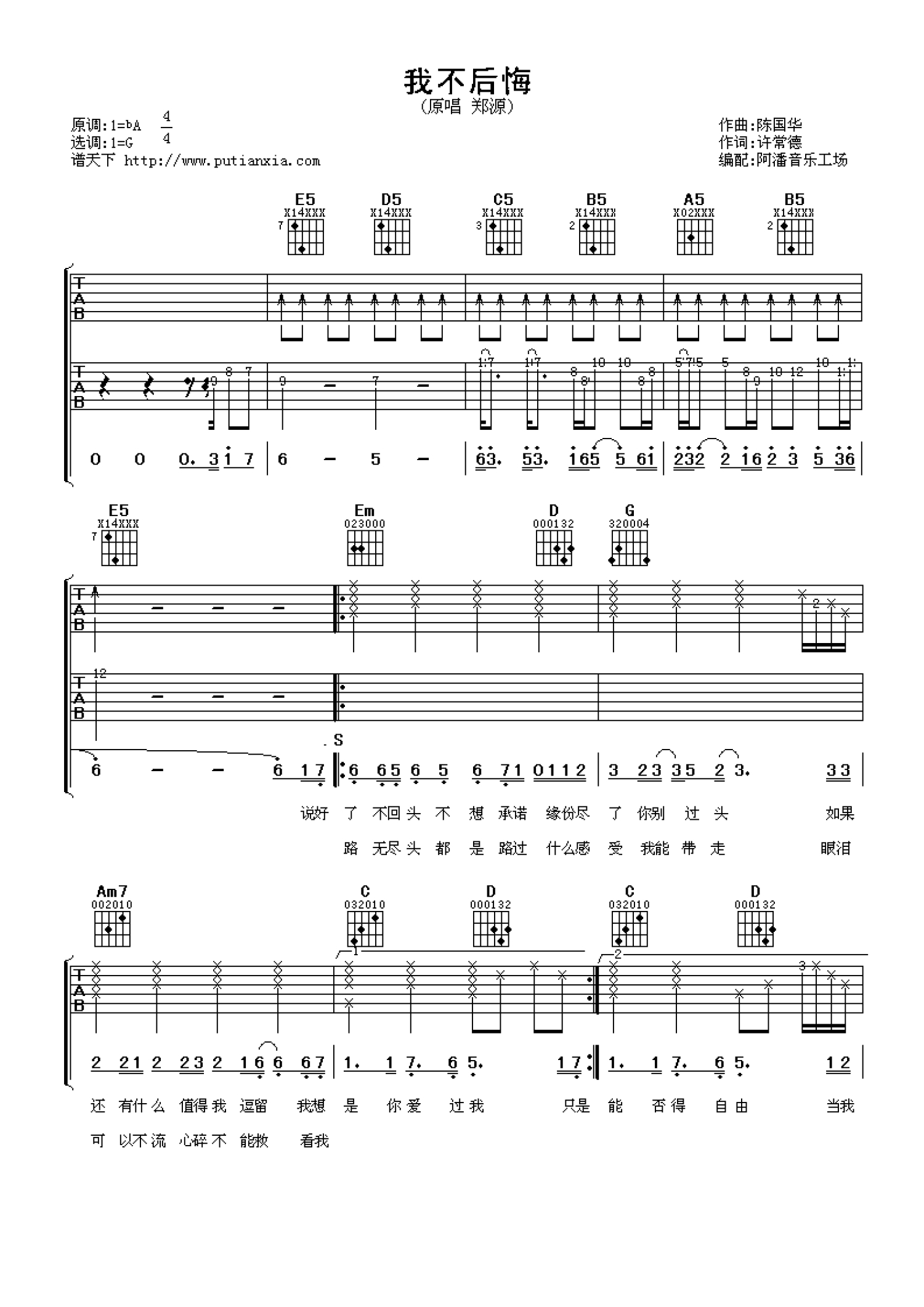 当前位置:琴谱网>吉他弹唱>我不后悔