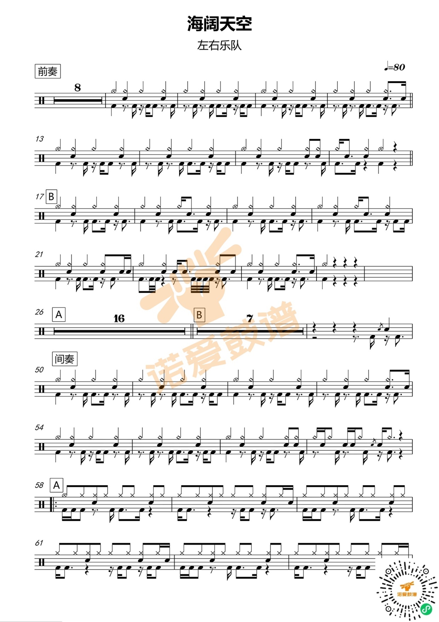 当前位置:琴谱网>架子鼓谱>海阔天空