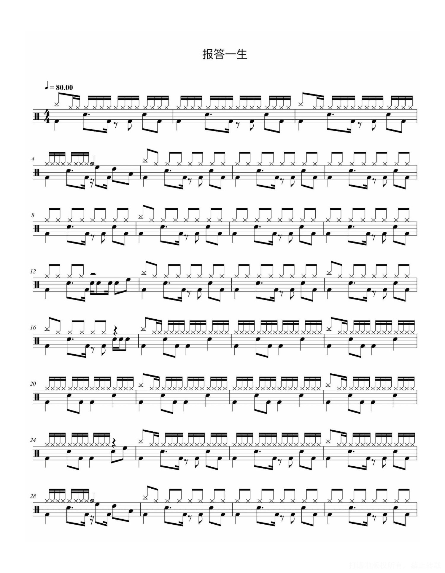 报答一生鼓谱 - Beyond - 架子鼓谱