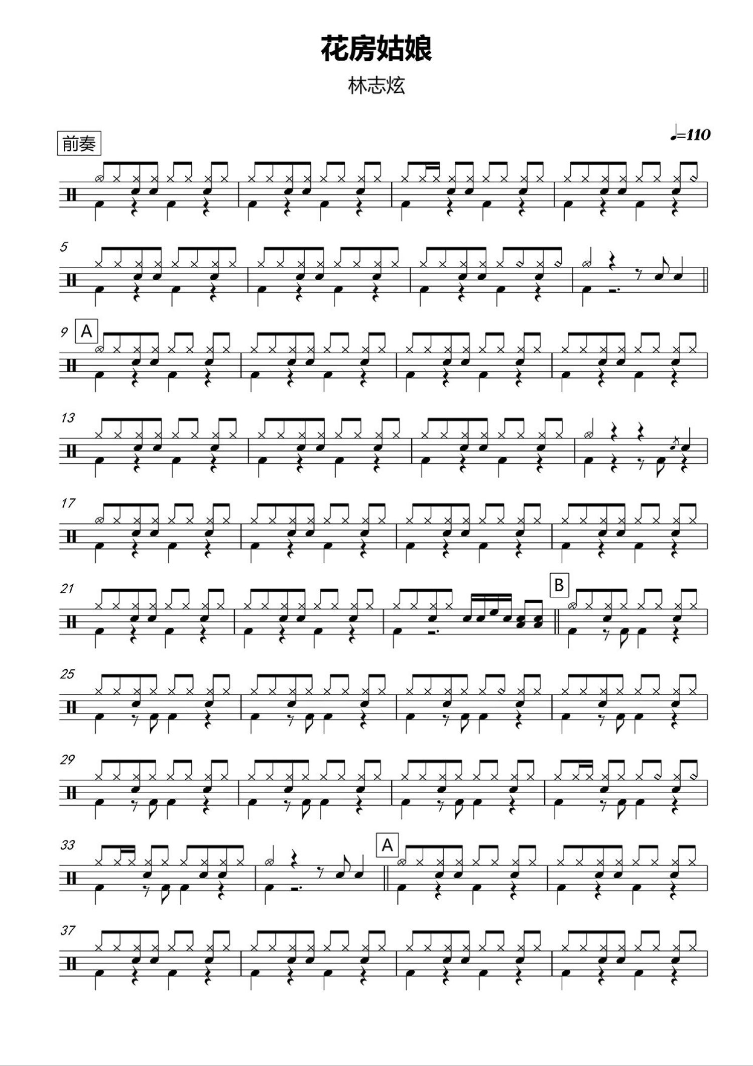 • 花房姑娘鼓谱 - 林志炫 - 架子鼓谱第1张