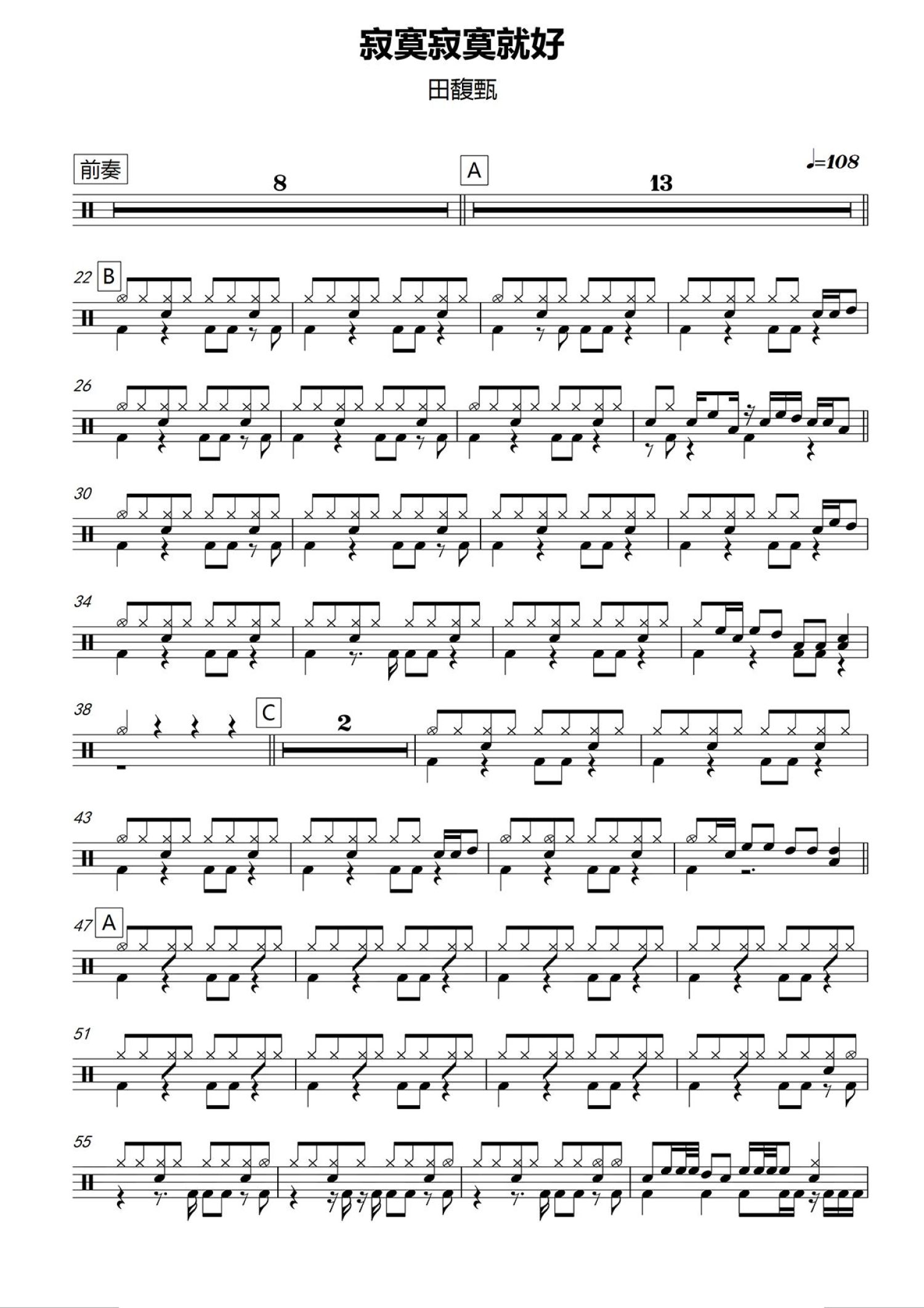 寂寞寂寞就好鼓谱 - 田馥甄 - 架子鼓谱
