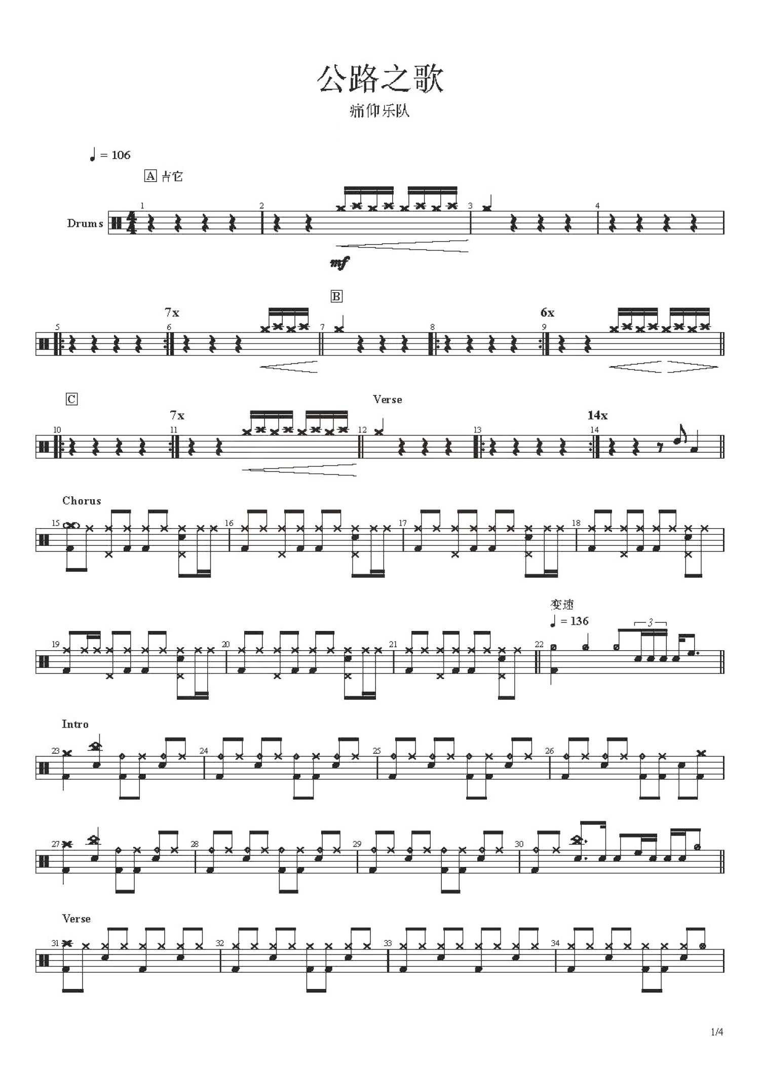 • 公路之歌鼓谱 - 痛仰乐队 - 架子鼓谱第1张