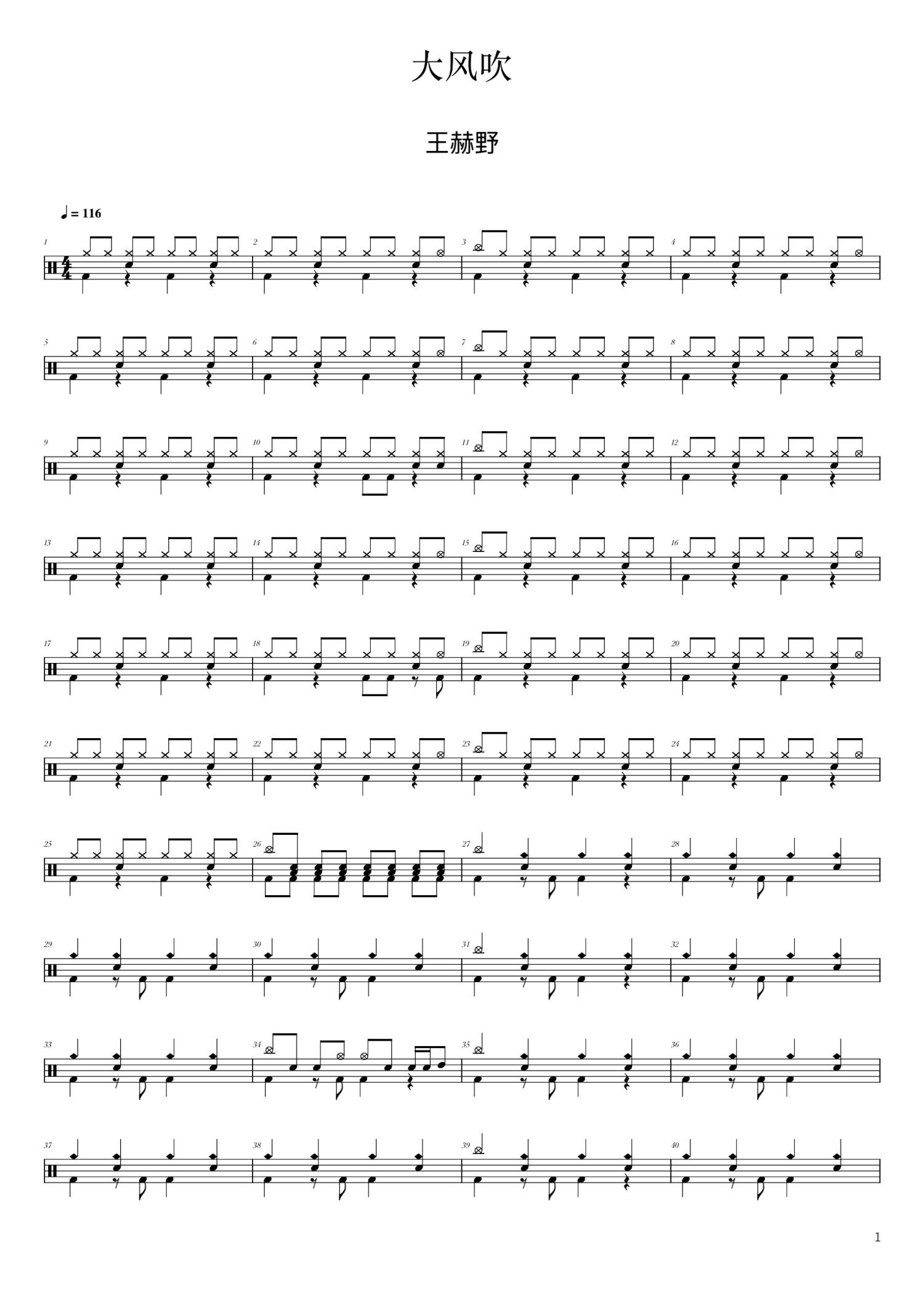 • 大风吹鼓谱 - 王赫野 - 架子鼓谱第1张