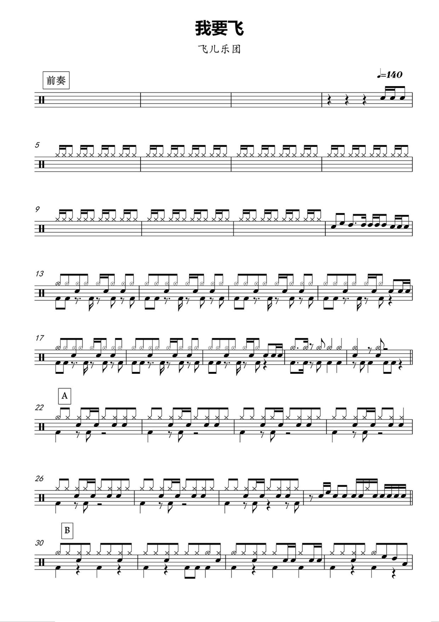 • 我要飞鼓谱 - 飞儿乐团 - 架子鼓谱第1张