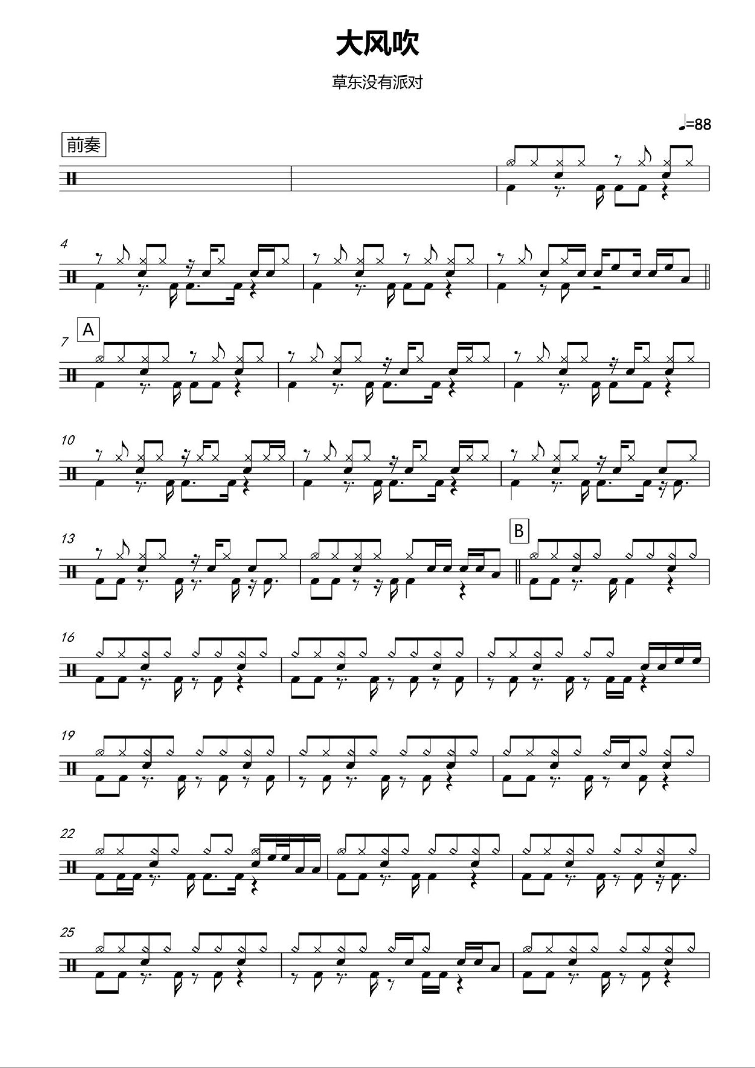 • 大风吹鼓谱 - 草东没有派对 - 架子鼓谱第1张