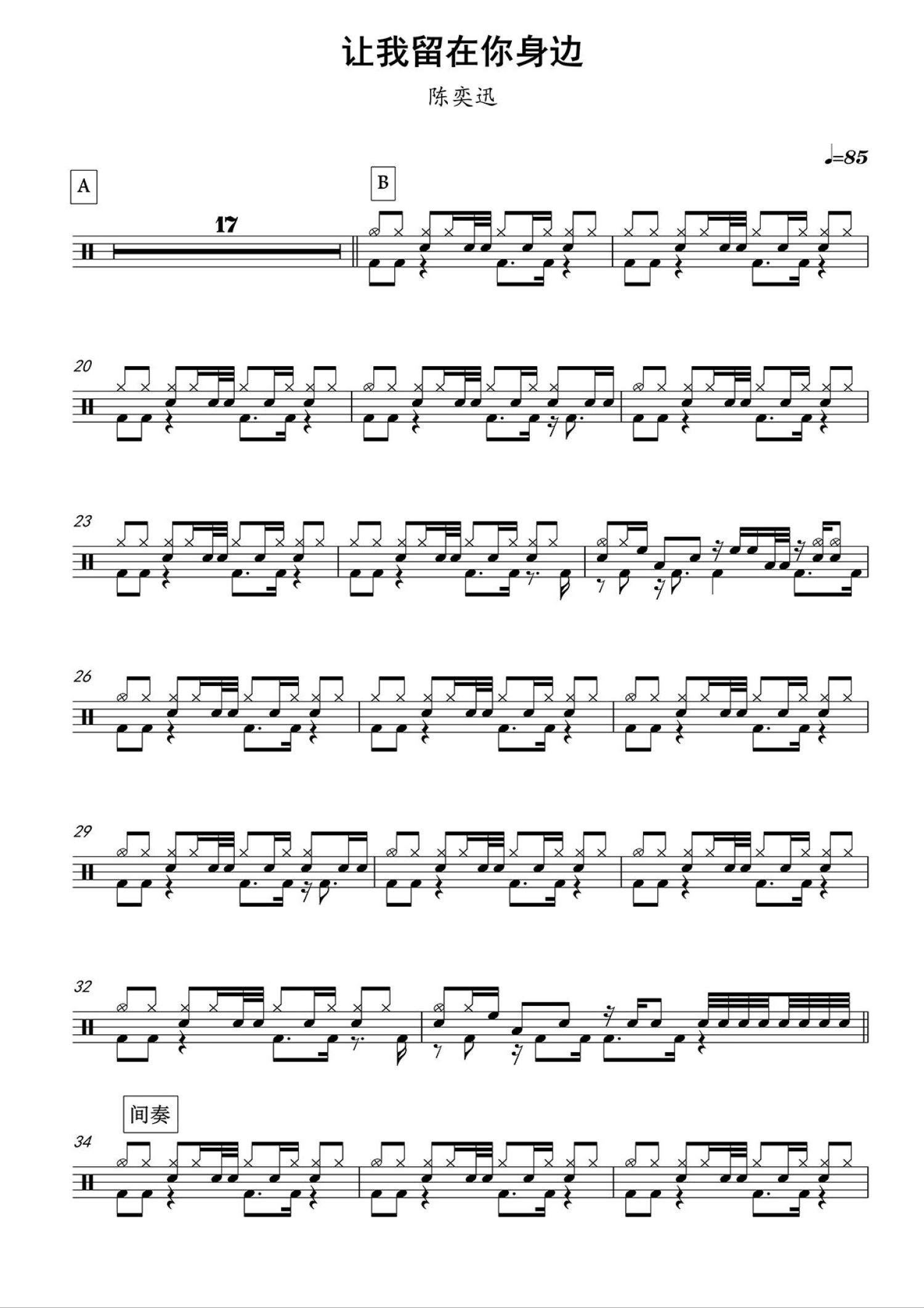 • 让我留在你身边鼓谱 - 陈奕迅 - 架子鼓谱第1张