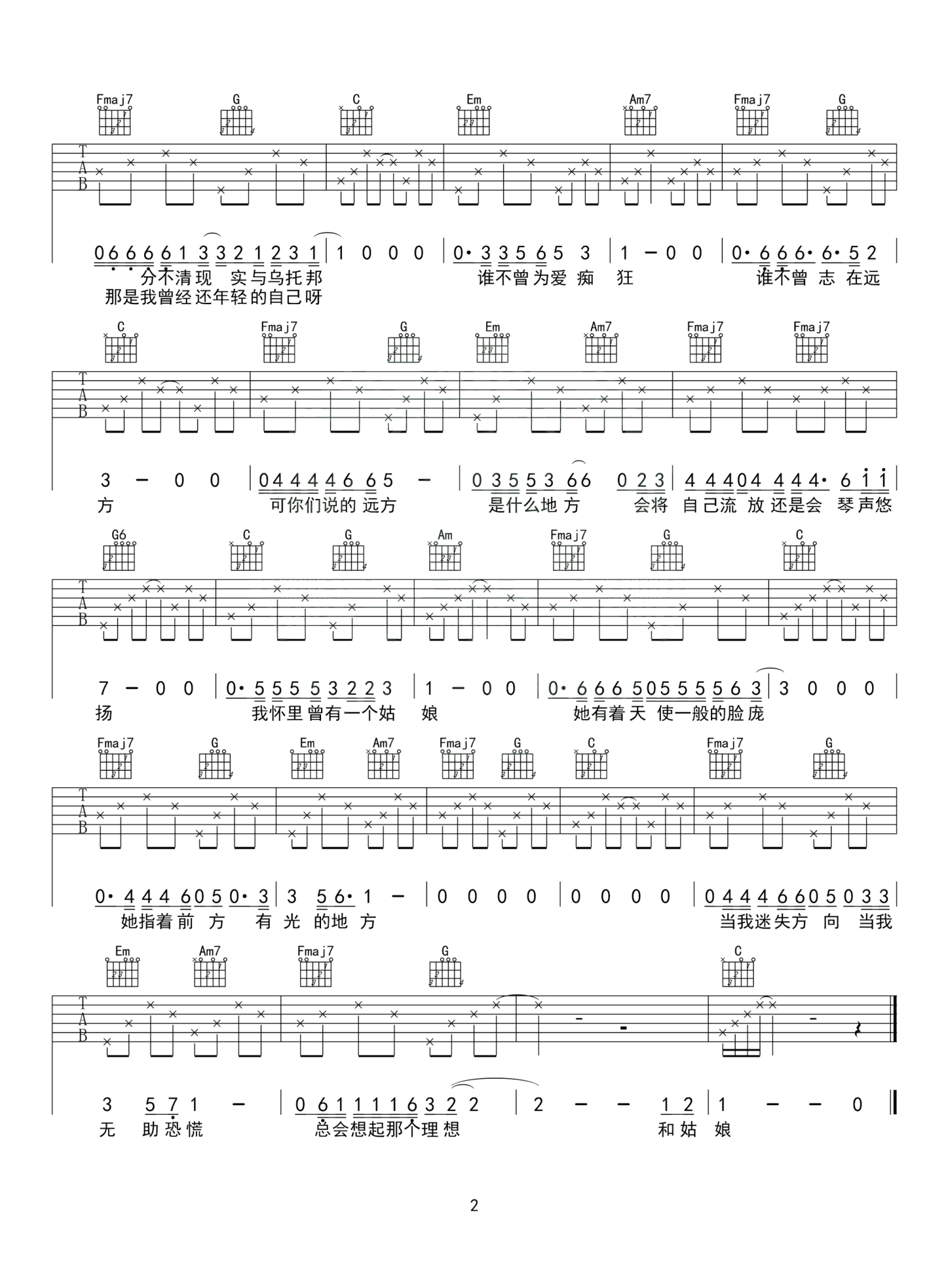 吉他弹唱C调来源:高音教771 浏览2019-04-17 17:49发布图谱共2页