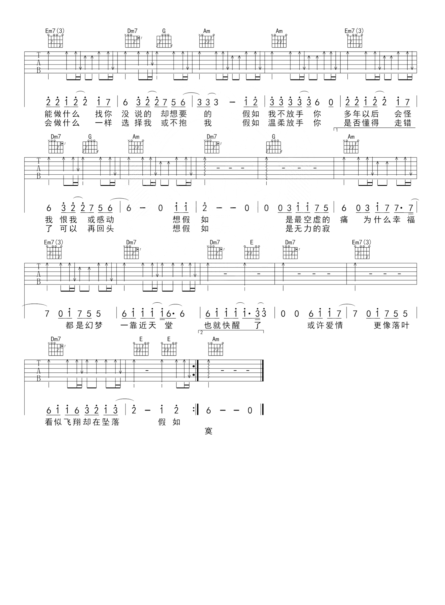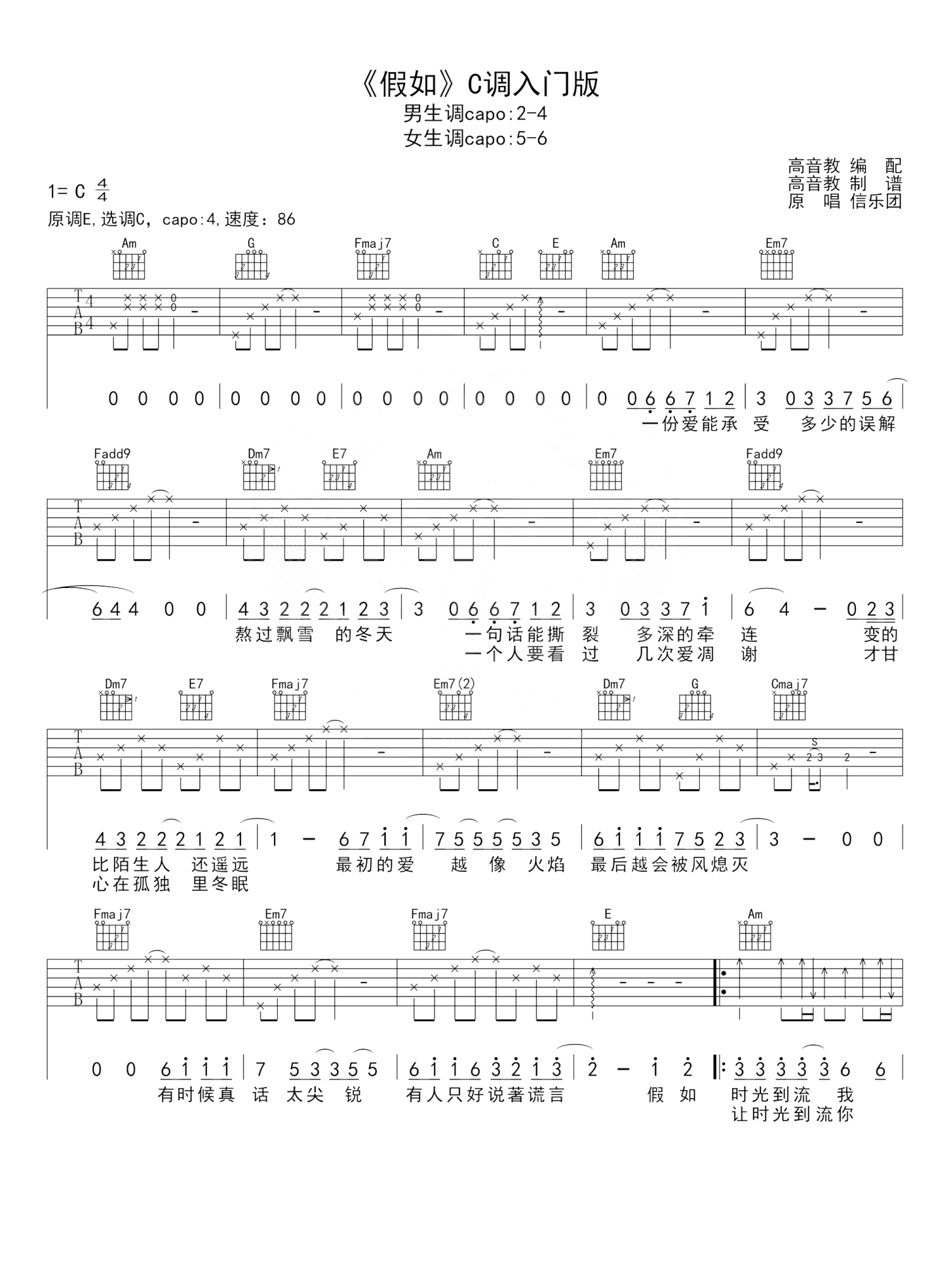 假如吉他谱 - 信乐团 - C调吉他弹唱谱