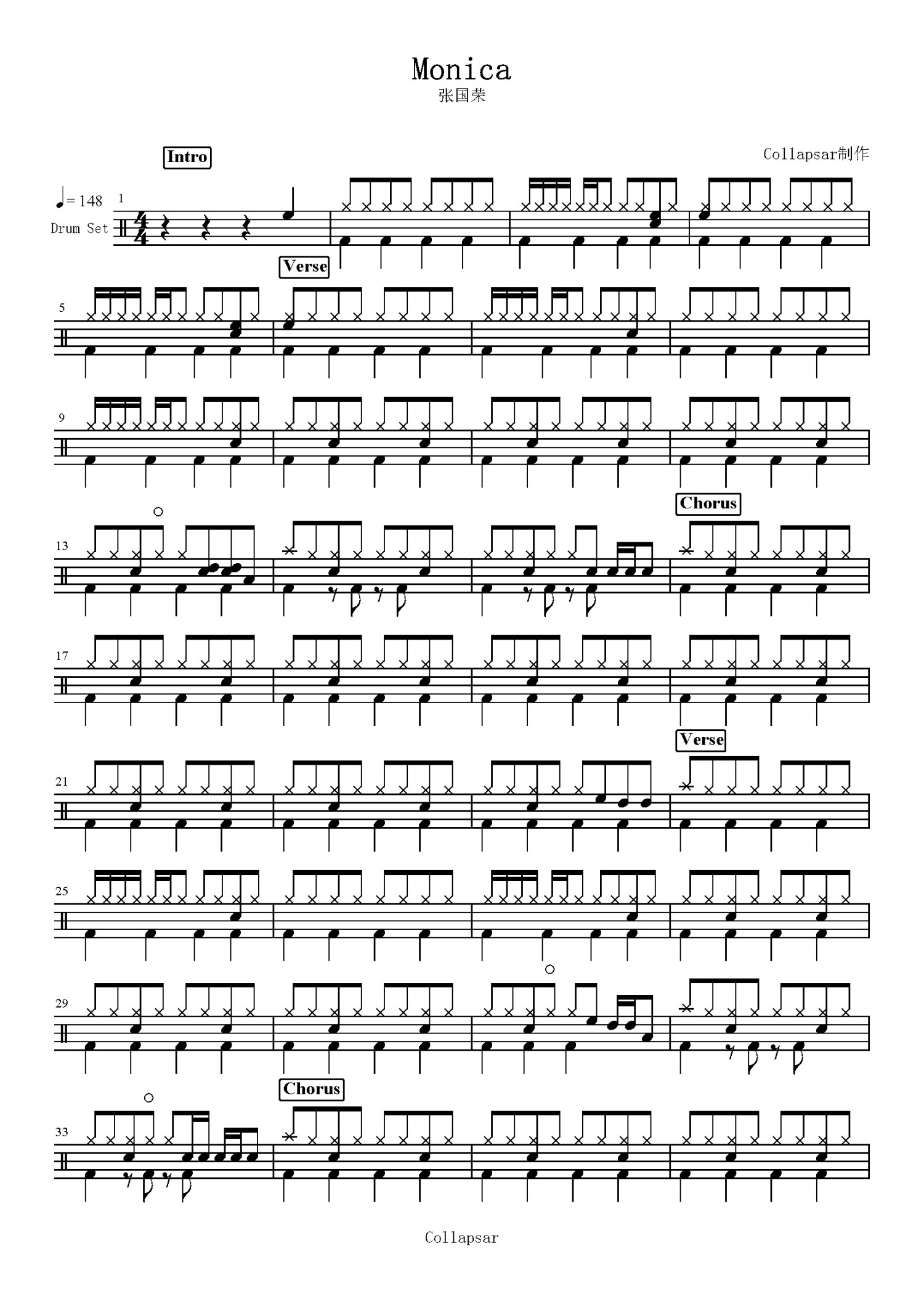 • Monica鼓谱 - 张国荣 - 架子鼓谱第1张