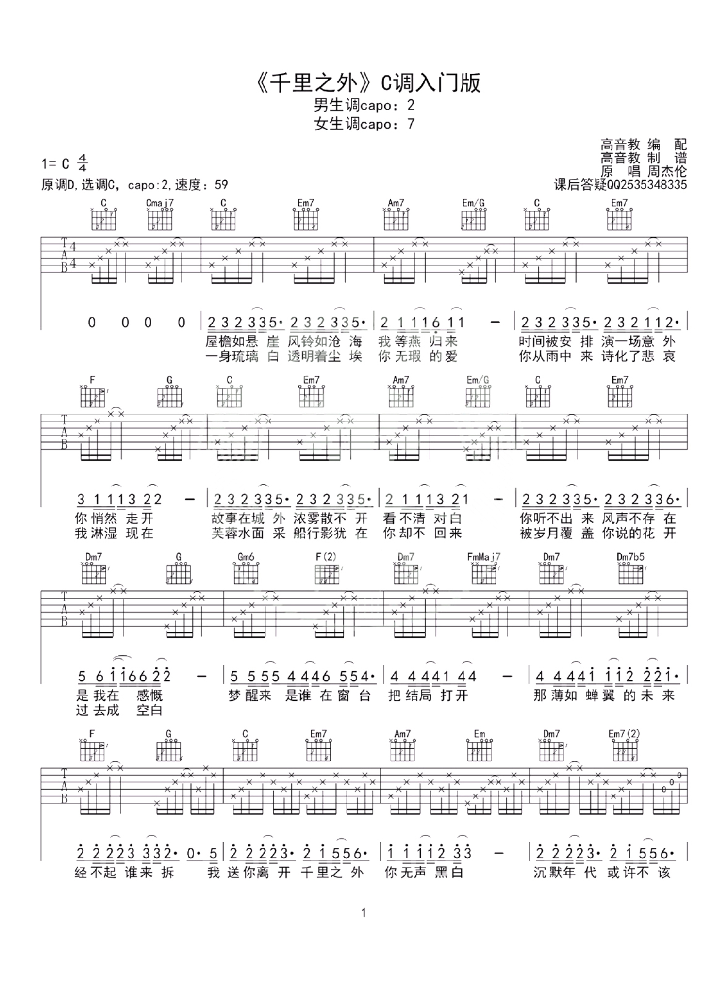 当前位置:琴谱网>吉他弹唱>千里之外