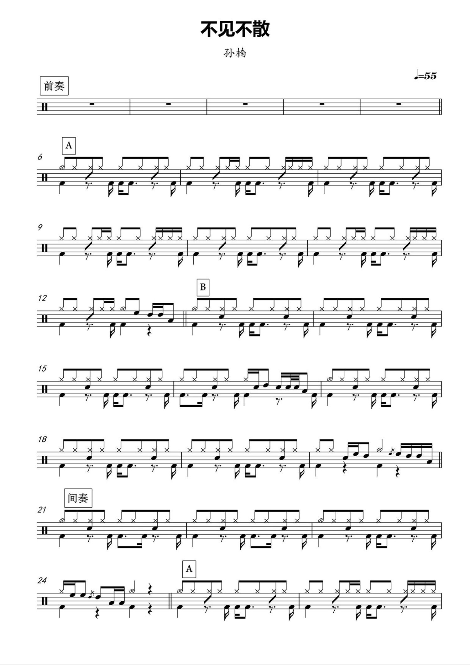 • 不见不散鼓谱 - 孙楠 - 架子鼓谱第1张