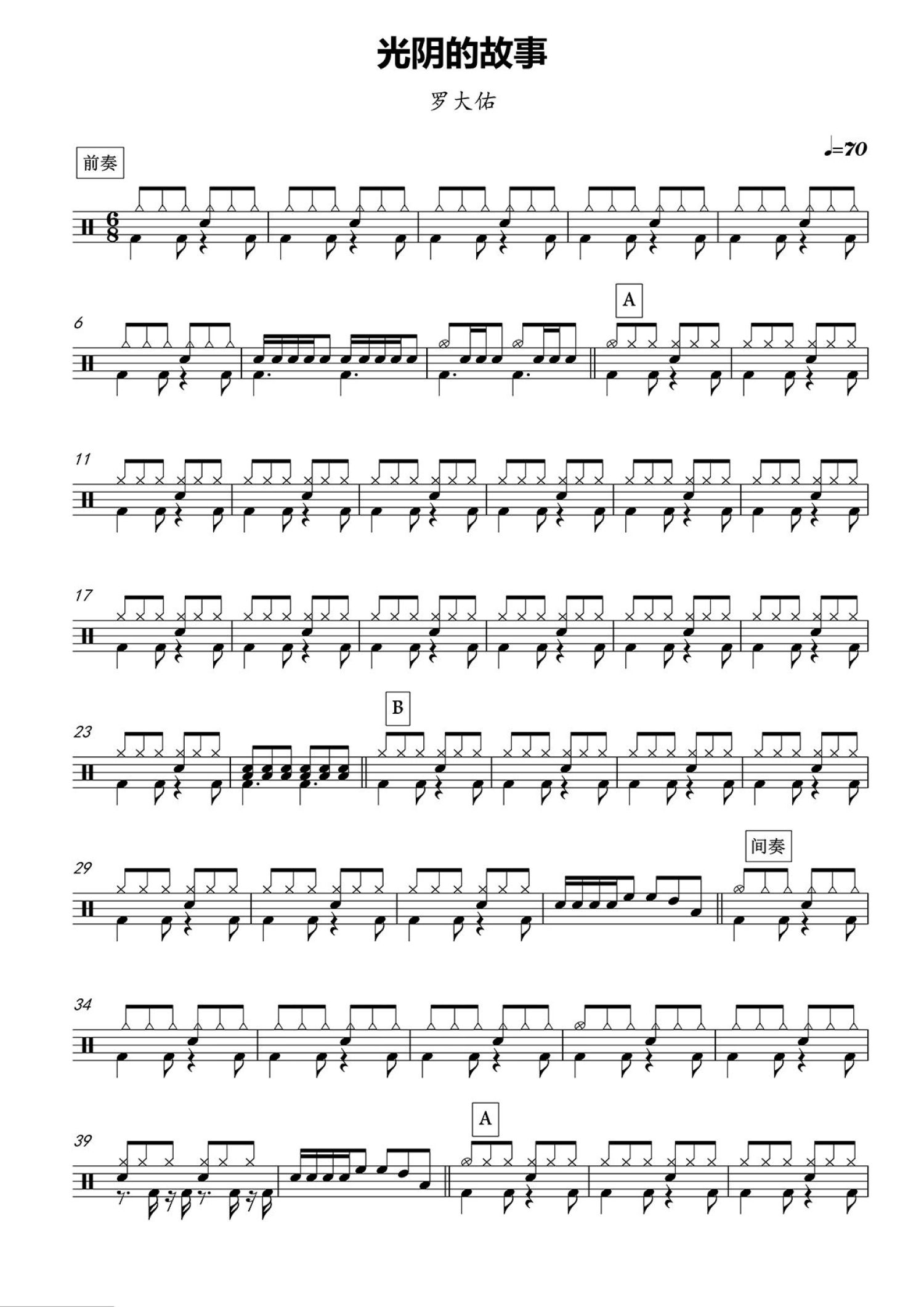 • 光阴的故事鼓谱 - 罗大佑 - 架子鼓谱第1张