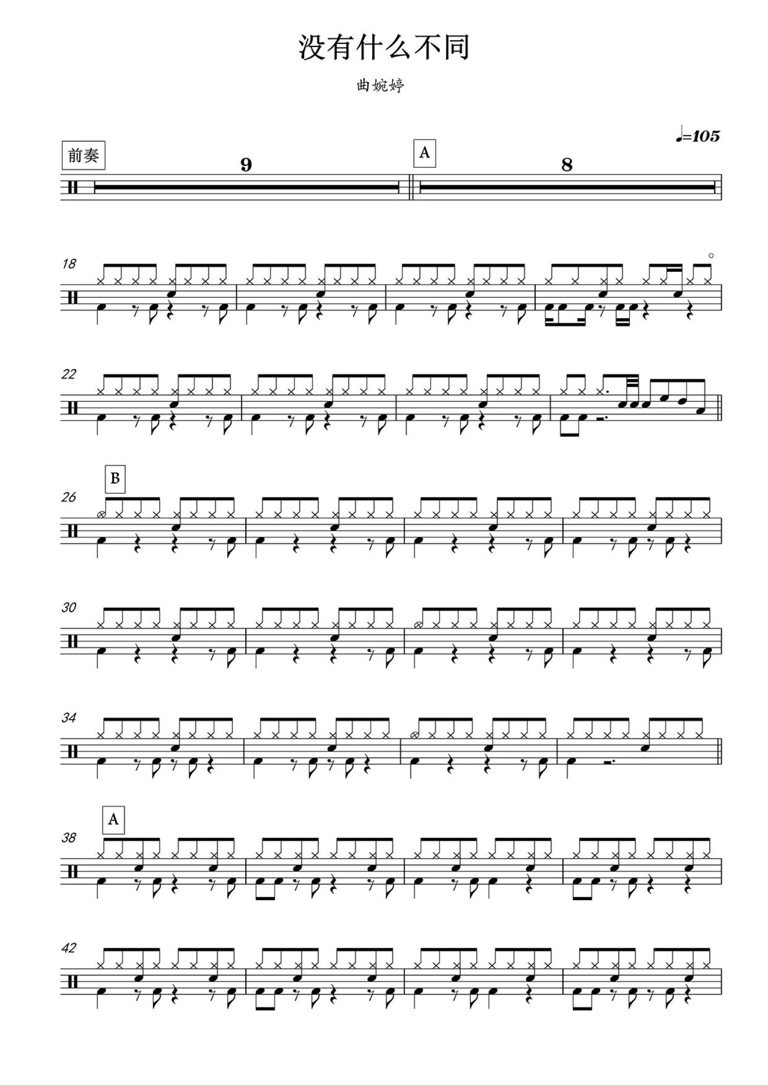 • 没有什么不同鼓谱 - 曲婉婷 - 架子鼓谱第1张