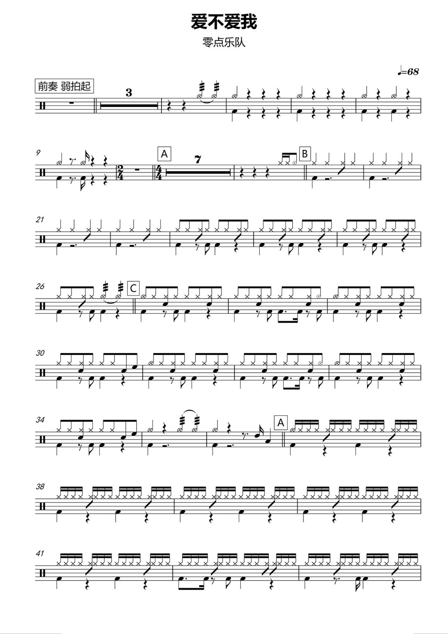 • 爱不爱我鼓谱 - 零点乐队 - 架子鼓谱第1张