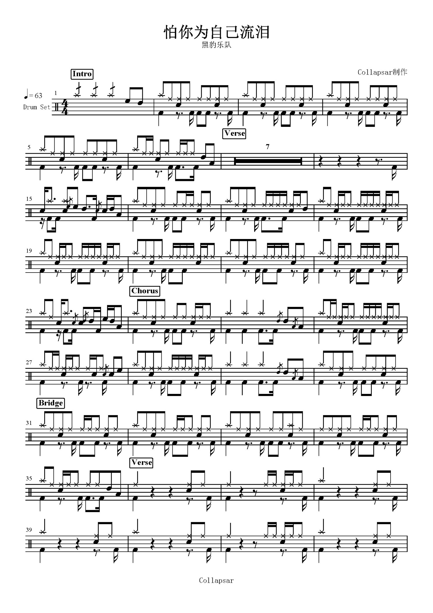 • 怕你为自己流泪鼓谱 - 黑豹乐队 - 架子鼓谱第1张