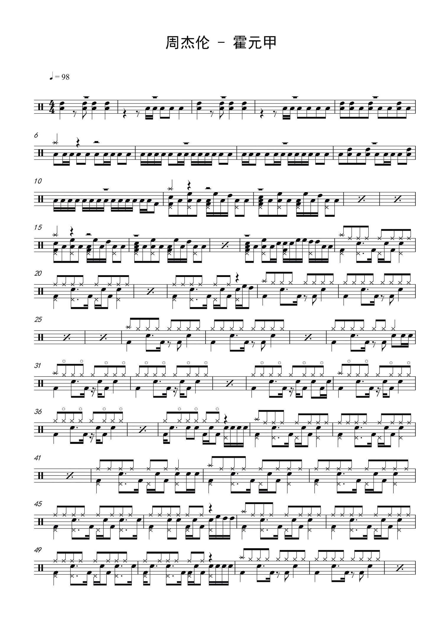 • 霍元甲鼓谱 - 周杰伦 - 架子鼓谱第1张