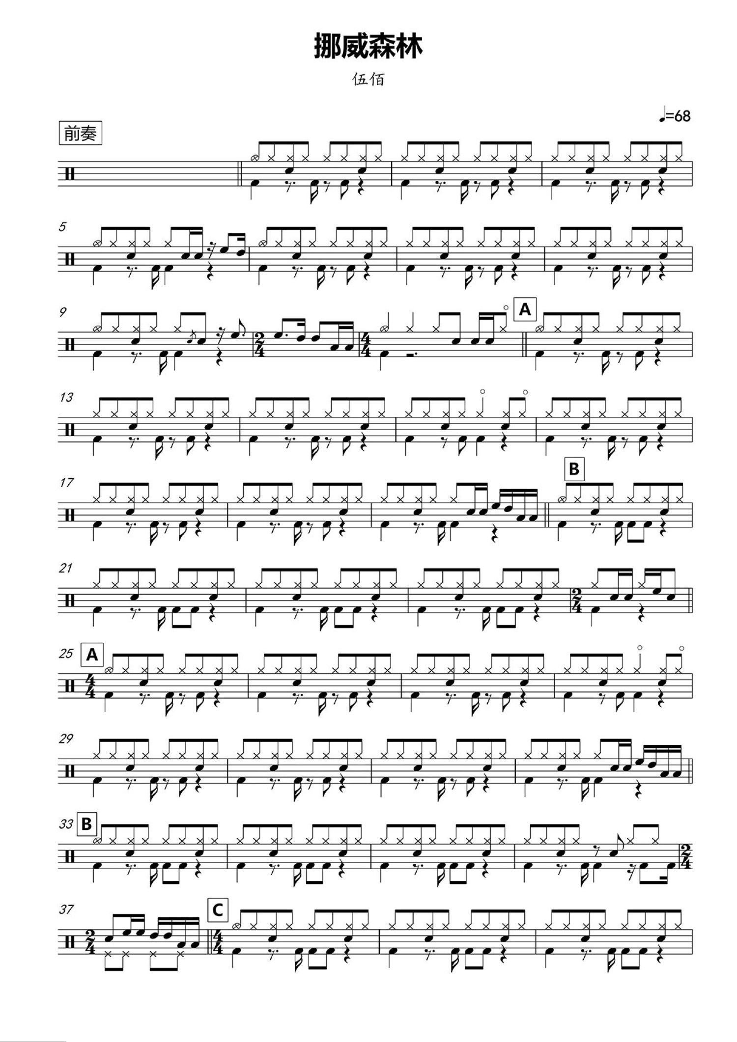 • 挪威的森林鼓谱 - 伍佰 - 架子鼓谱第1张