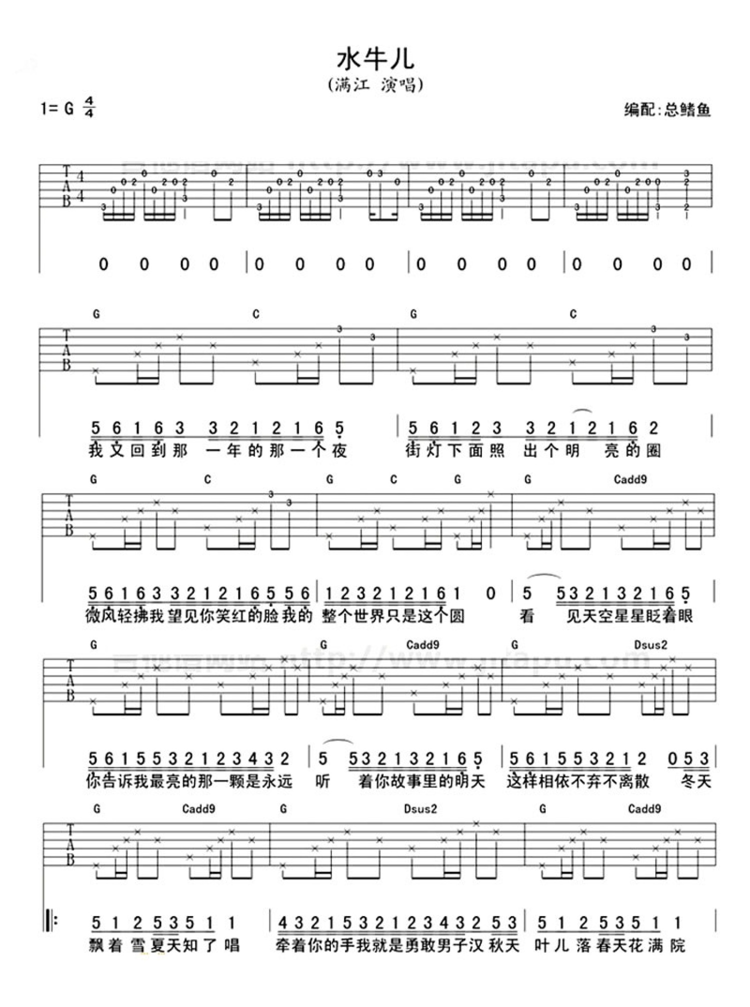 水牛儿吉他谱 - 满江 - G调吉他弹唱谱