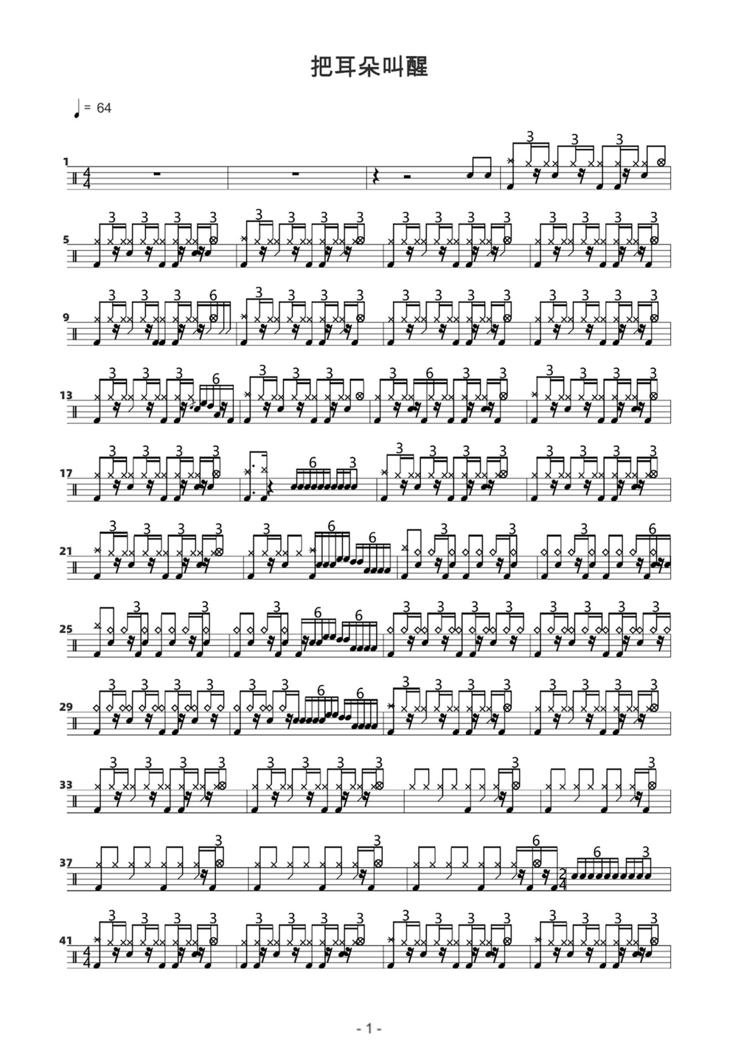 • 把耳朵叫醒鼓谱 - 金海心 - 架子鼓谱第1张