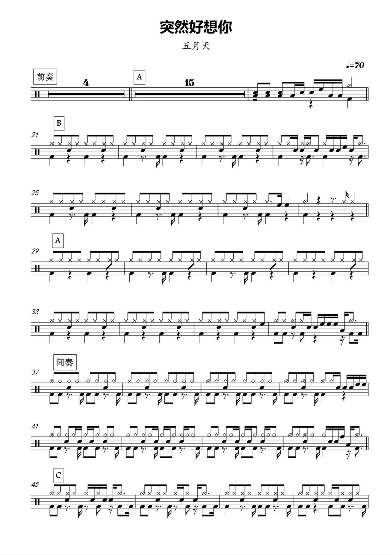 • 突然好想你鼓谱 - 五月天 - 架子鼓谱第1张
