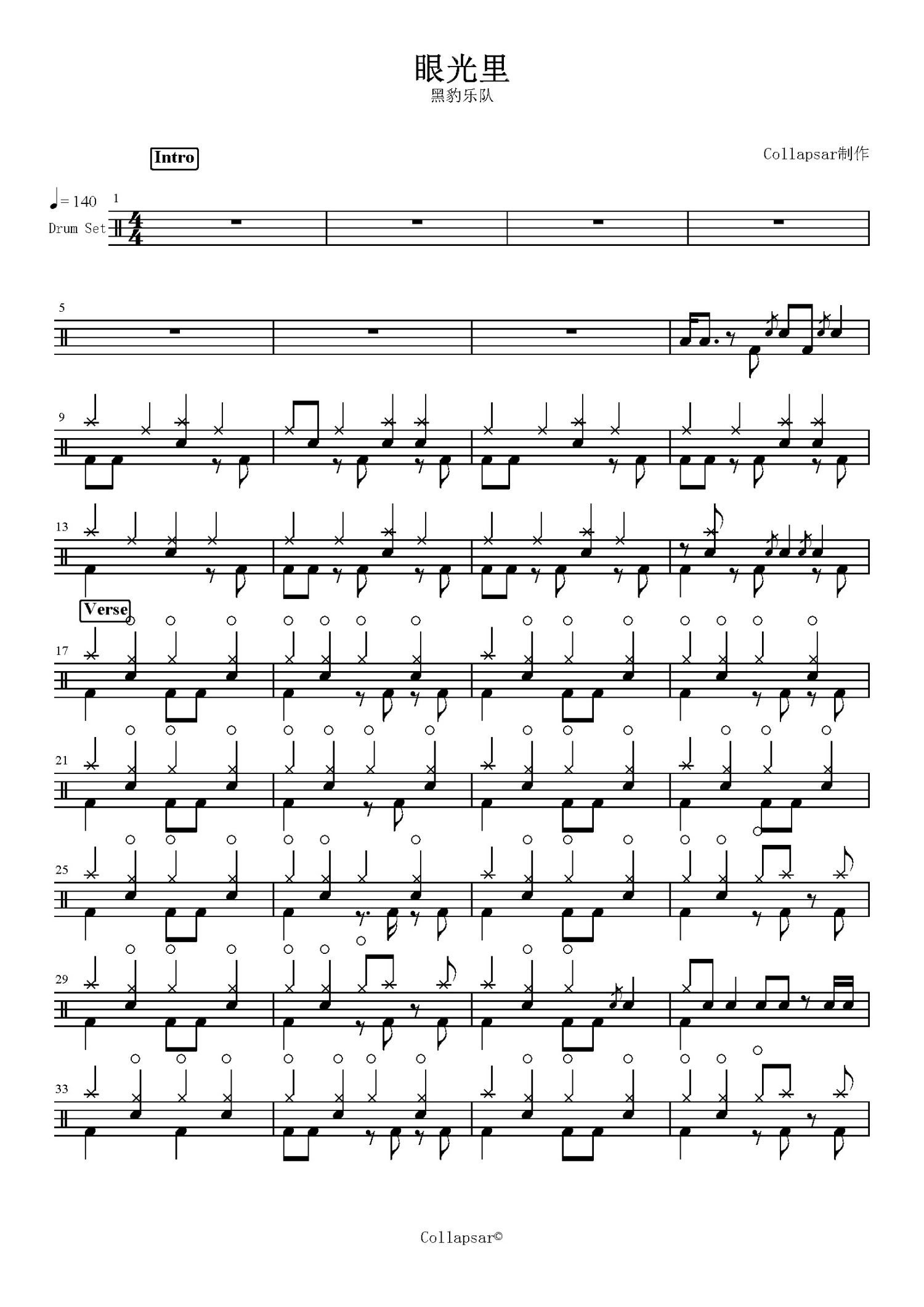 • 眼光里鼓谱 - 黑豹乐队 - 架子鼓谱第1张