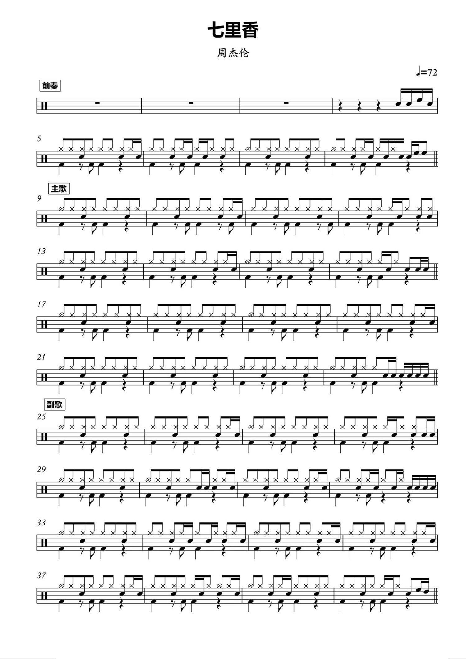 • 七里香鼓谱 - 周杰伦 - 架子鼓谱第1张