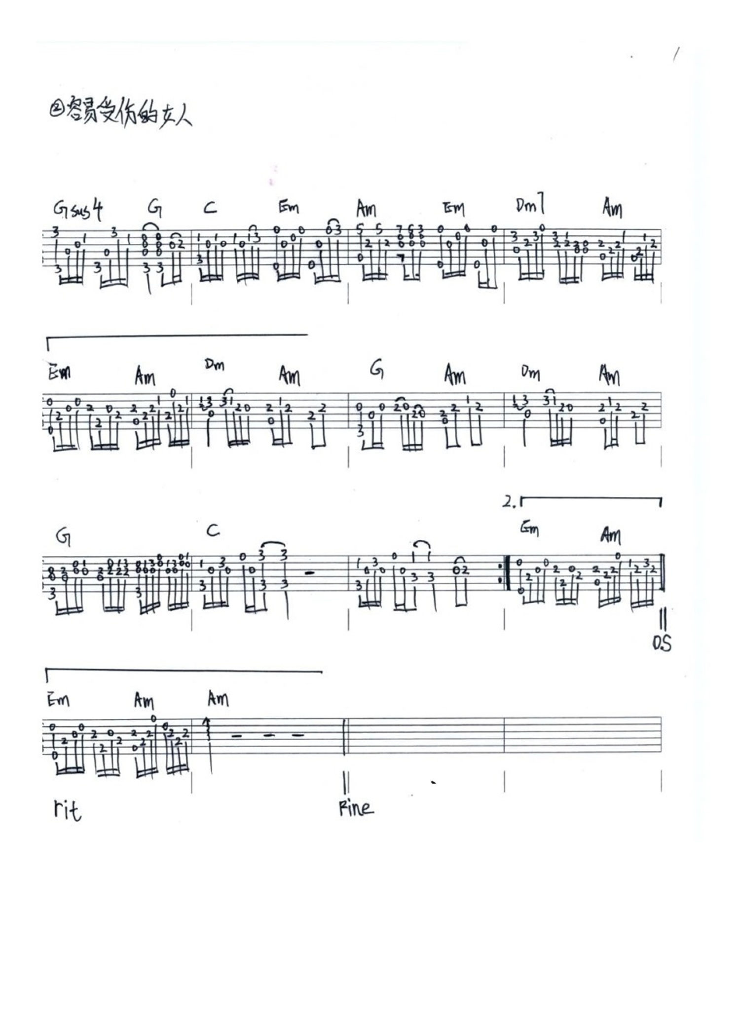 容易受伤的女人吉他谱 - 王菲 - C调吉他独奏谱 - 手写版