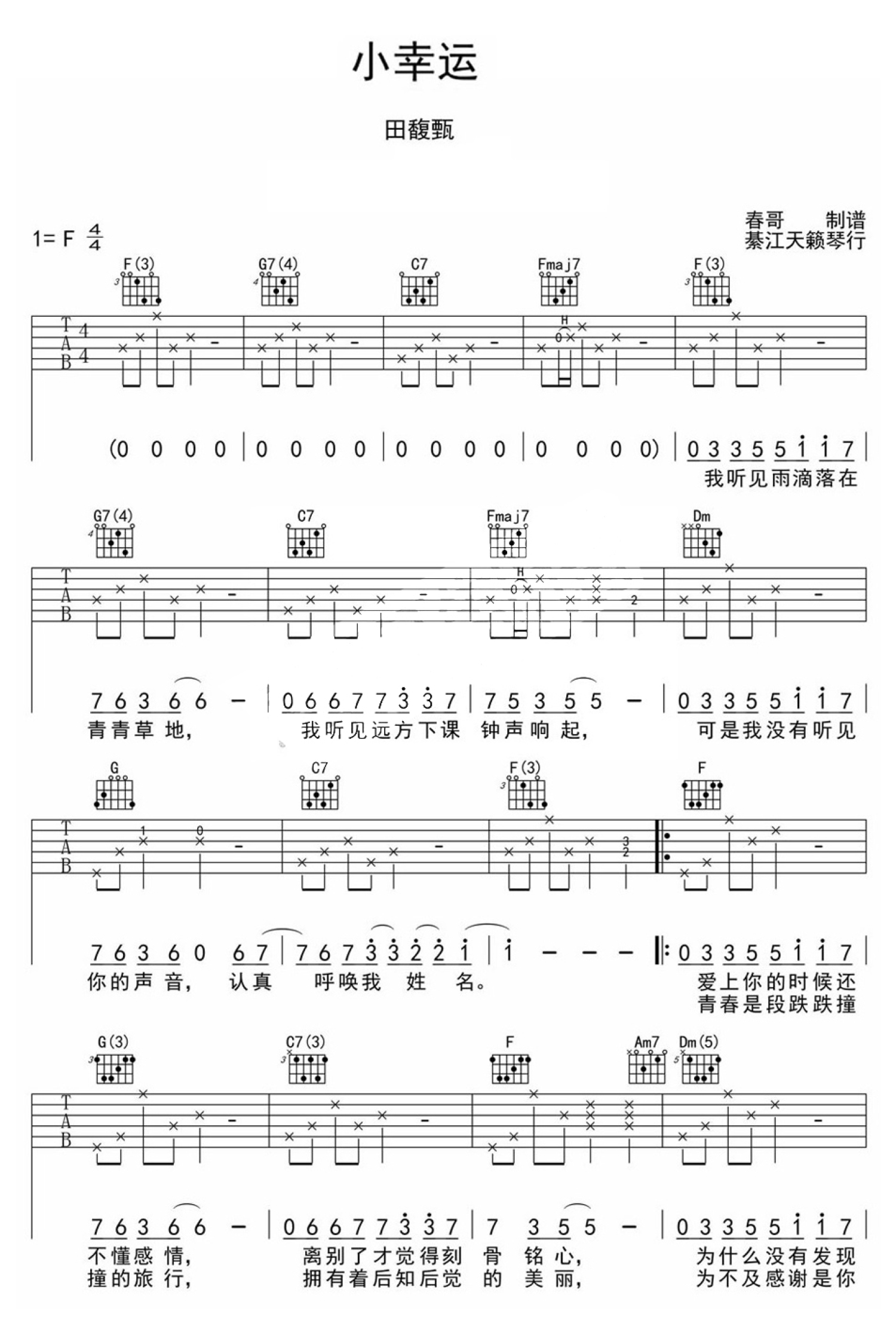 小幸运吉他谱 - 田馥甄 - F调吉他弹唱谱