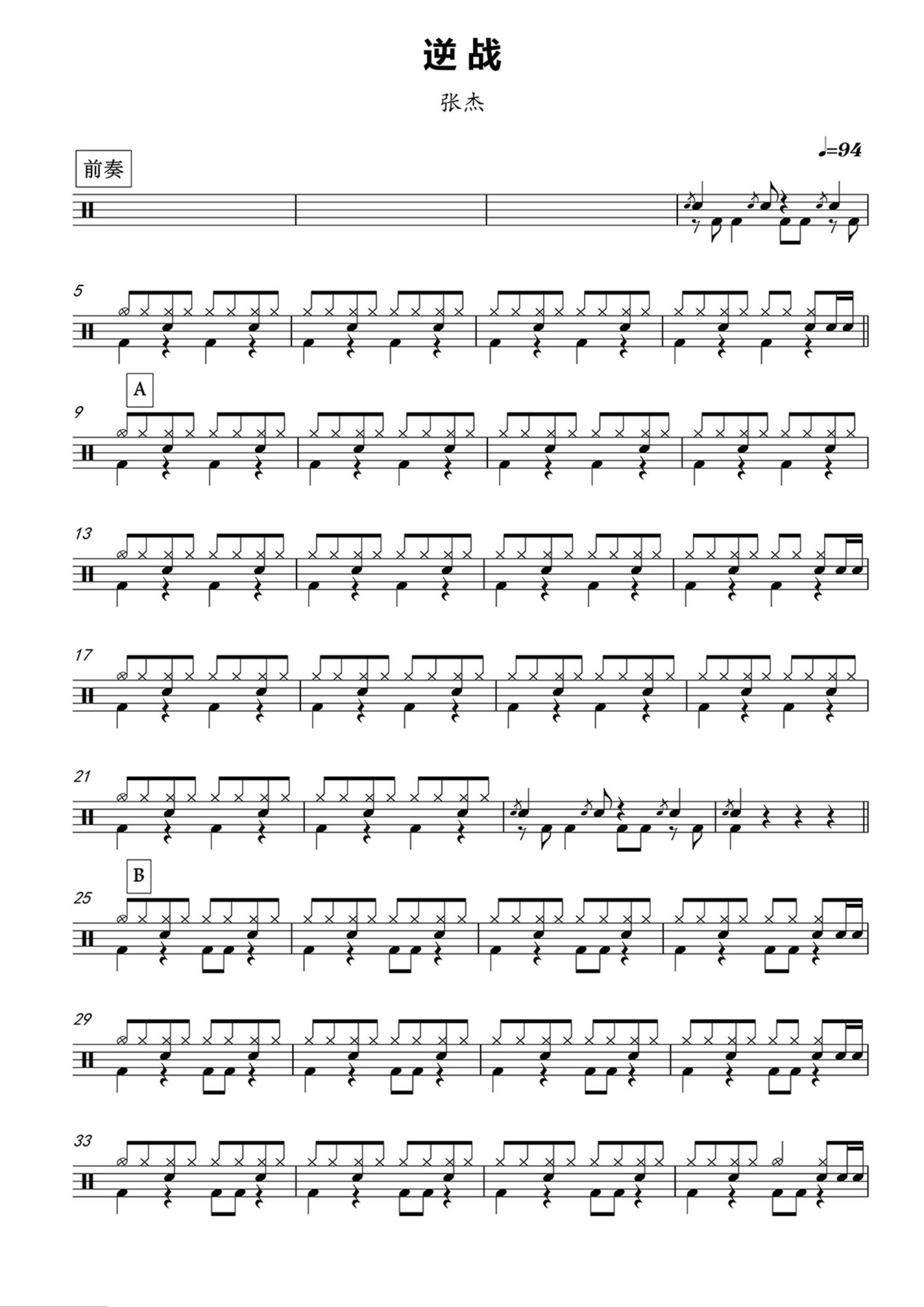 • 逆战鼓谱 - 张杰 - 架子鼓谱第1张