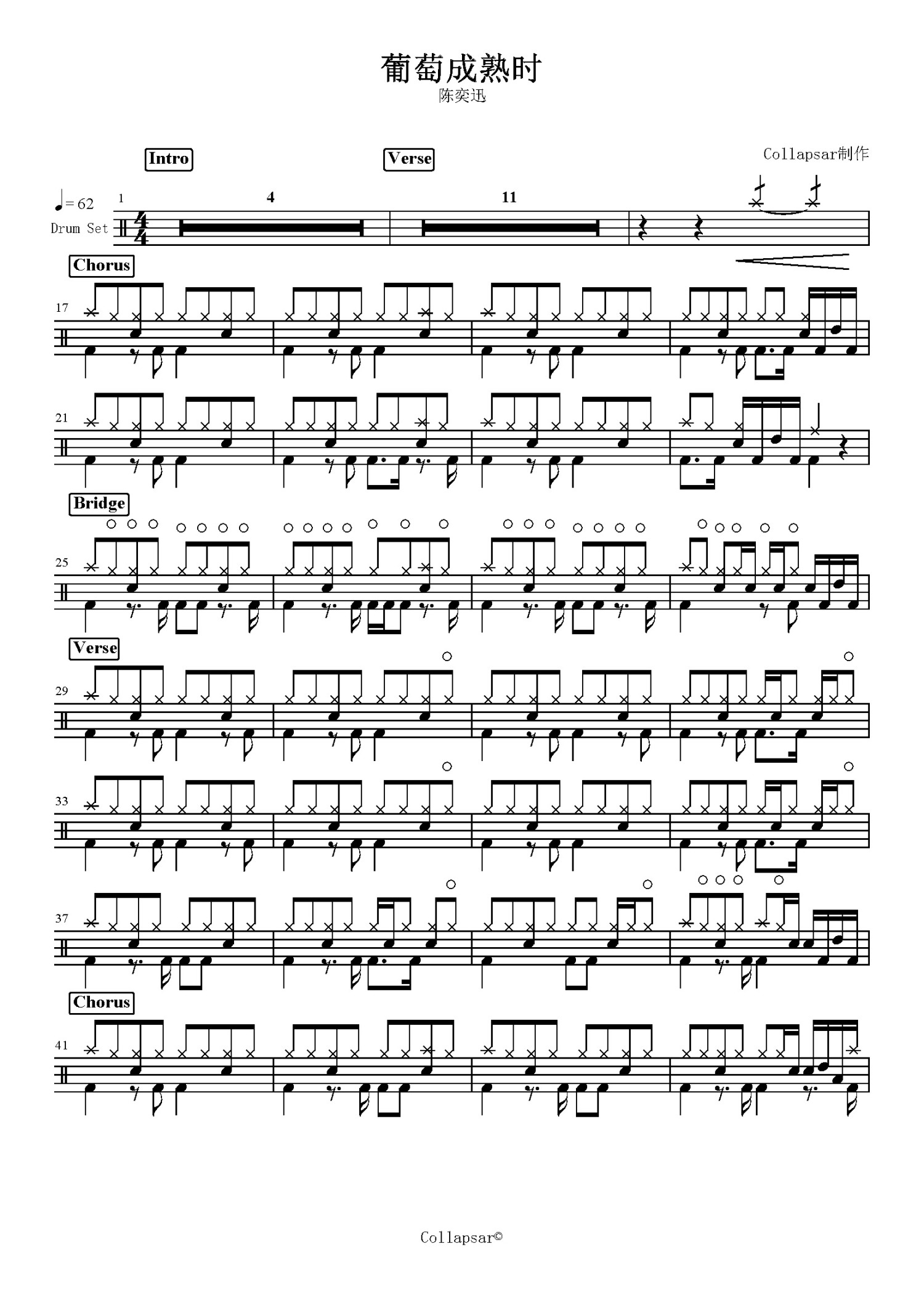 • 葡萄成熟时鼓谱 - 陈奕迅 - 架子鼓谱第1张