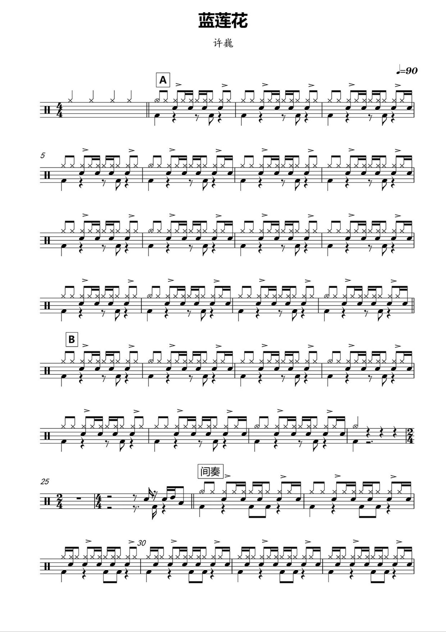 • 蓝莲花鼓谱 - 许巍 - 架子鼓谱第1张