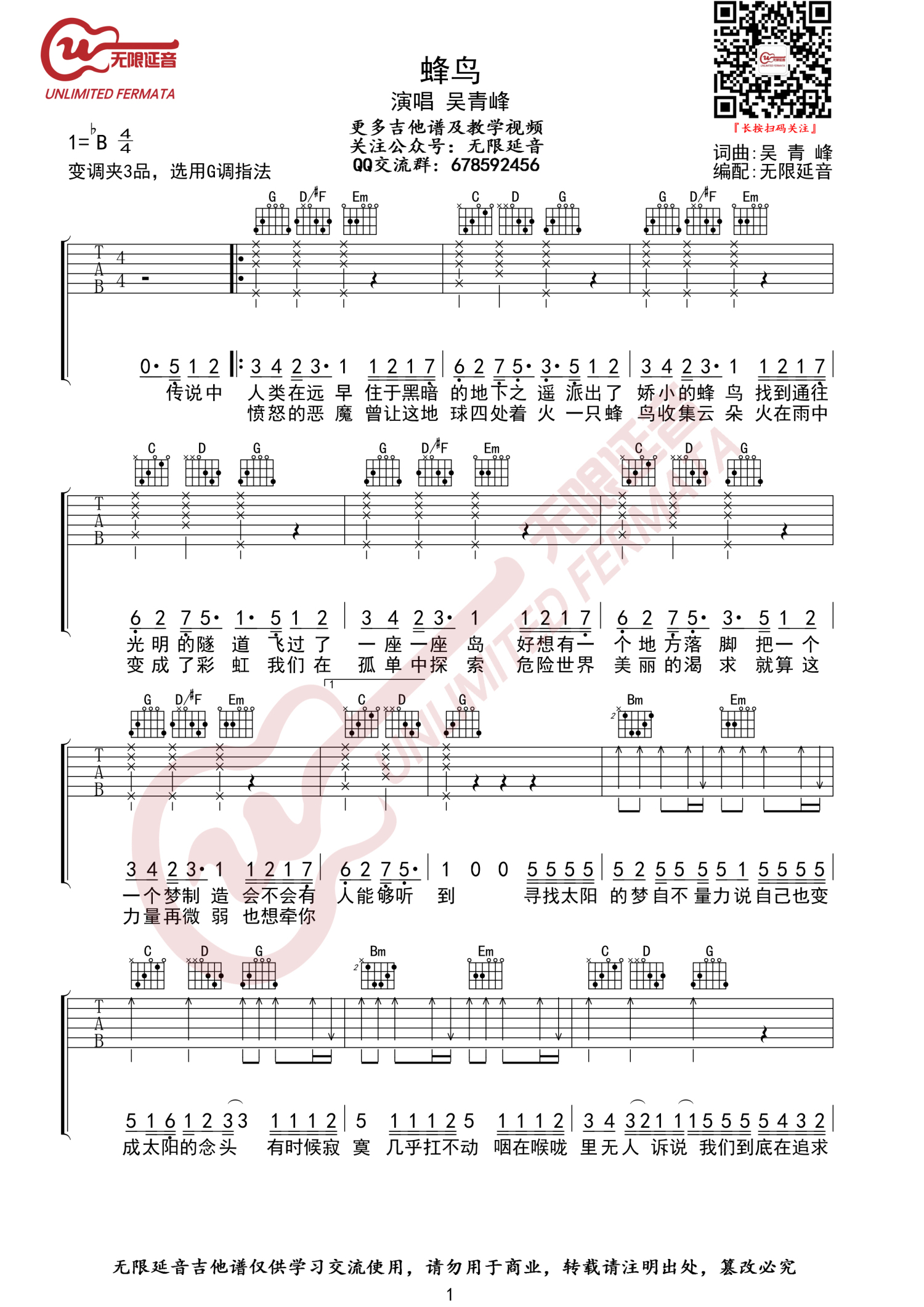 蜂鸟吉他谱 - 吴青峰 - G调吉他弹唱谱