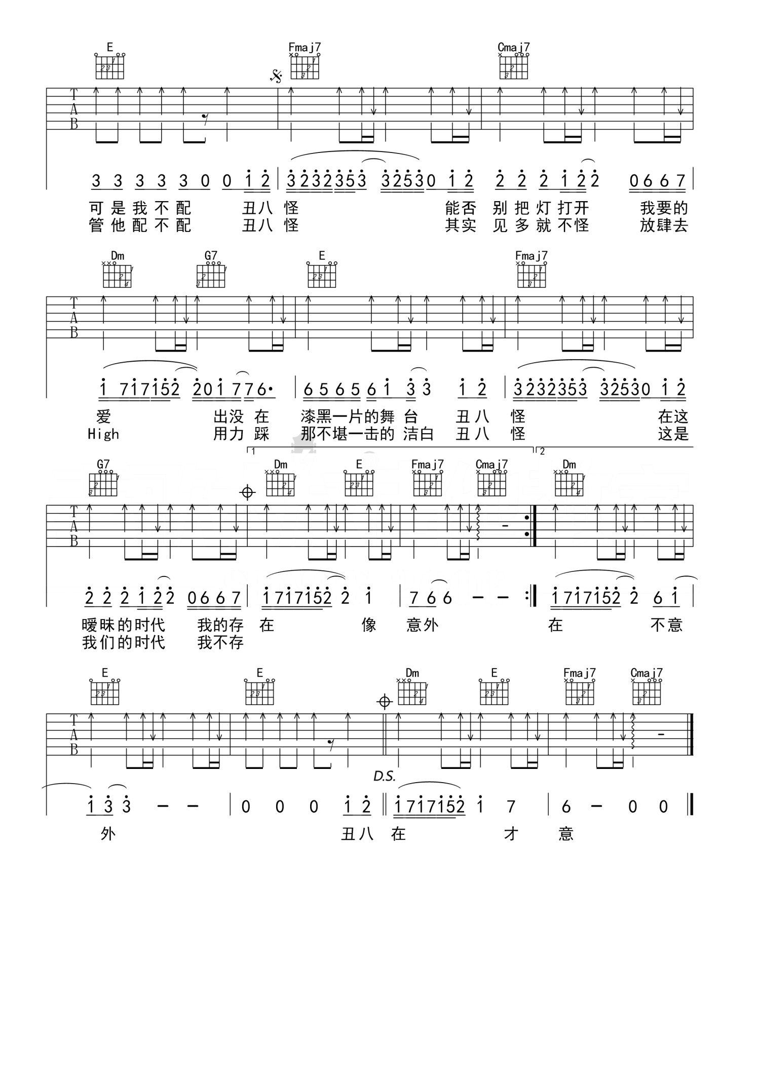当前位置:琴谱网>吉他弹唱>丑八怪