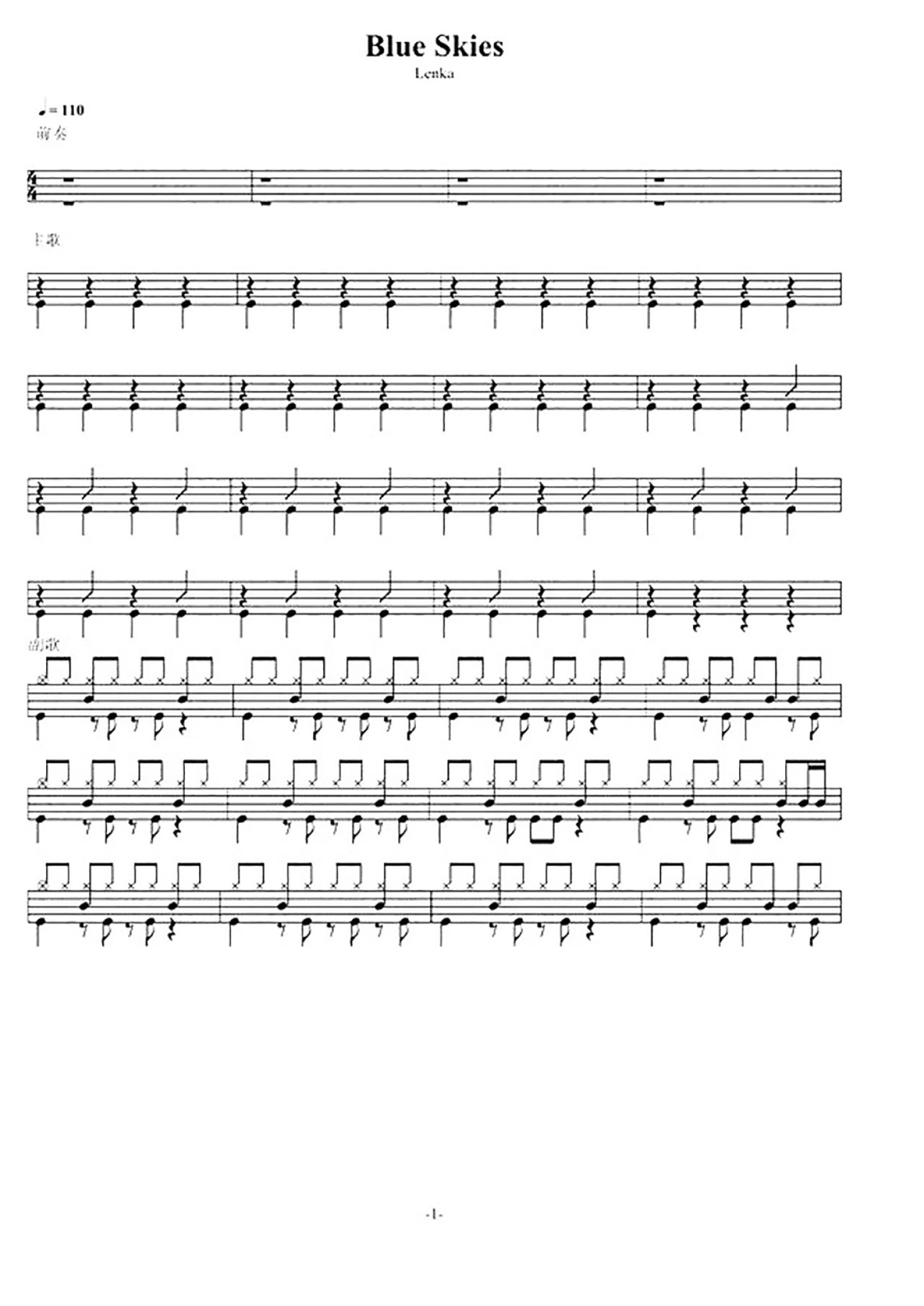 • Blue Skies鼓谱 - 蕾恩卡·克莉帕克/Lenka Kripac - 架子鼓谱第1张